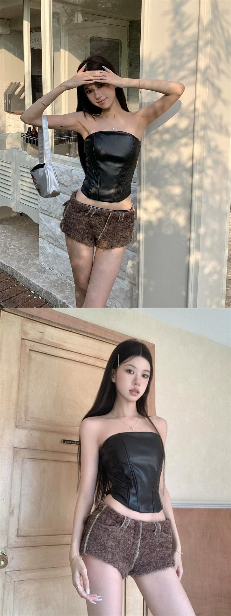 メイラード衣装ホットガールセクシーなブラウン Pu レザーチューブトップ女性の秋のフィッシュボーンショートスタイルトップ外で着用 オータム 秋物 bstraw33997764317 | beaute25