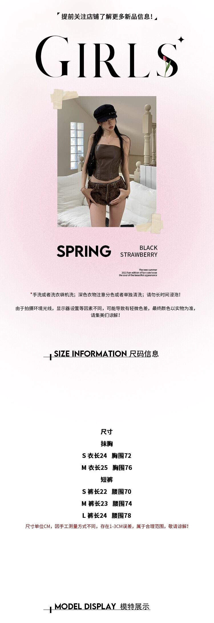 色:ブラウンチューブトップ,黒いチューブトップ,ショートパンツ