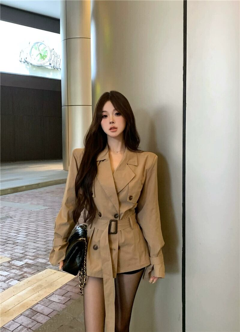 カーキ トレンチコート レディース 2023 秋新作 長袖 スリムウエスト ダブルブレスト ミドル丈 アウター トップス ロング オータム 秋物 bstraw3617398331 | beaute25