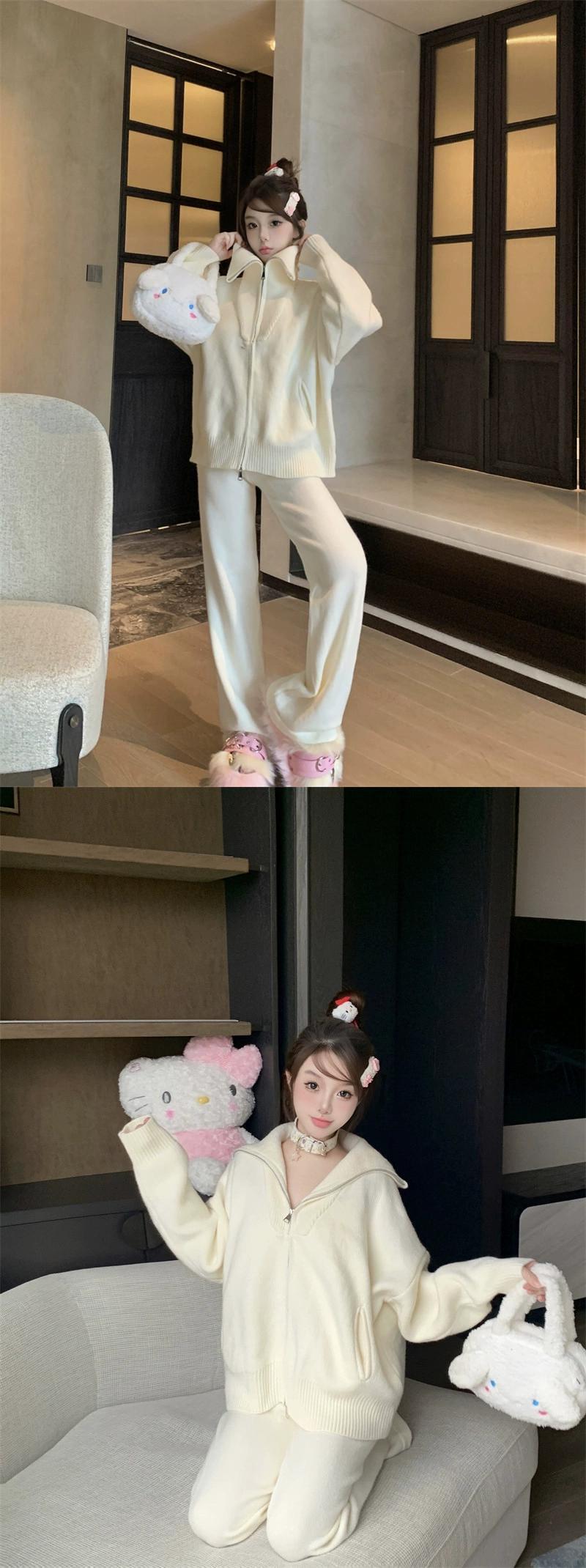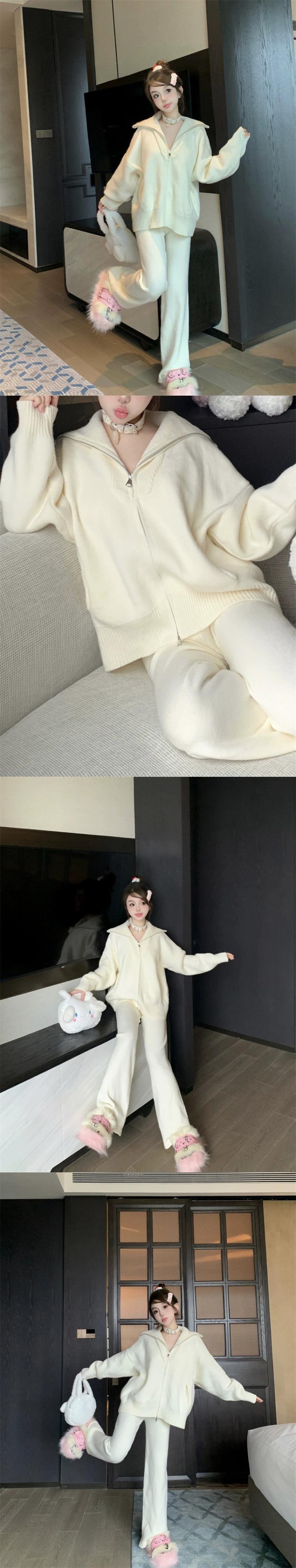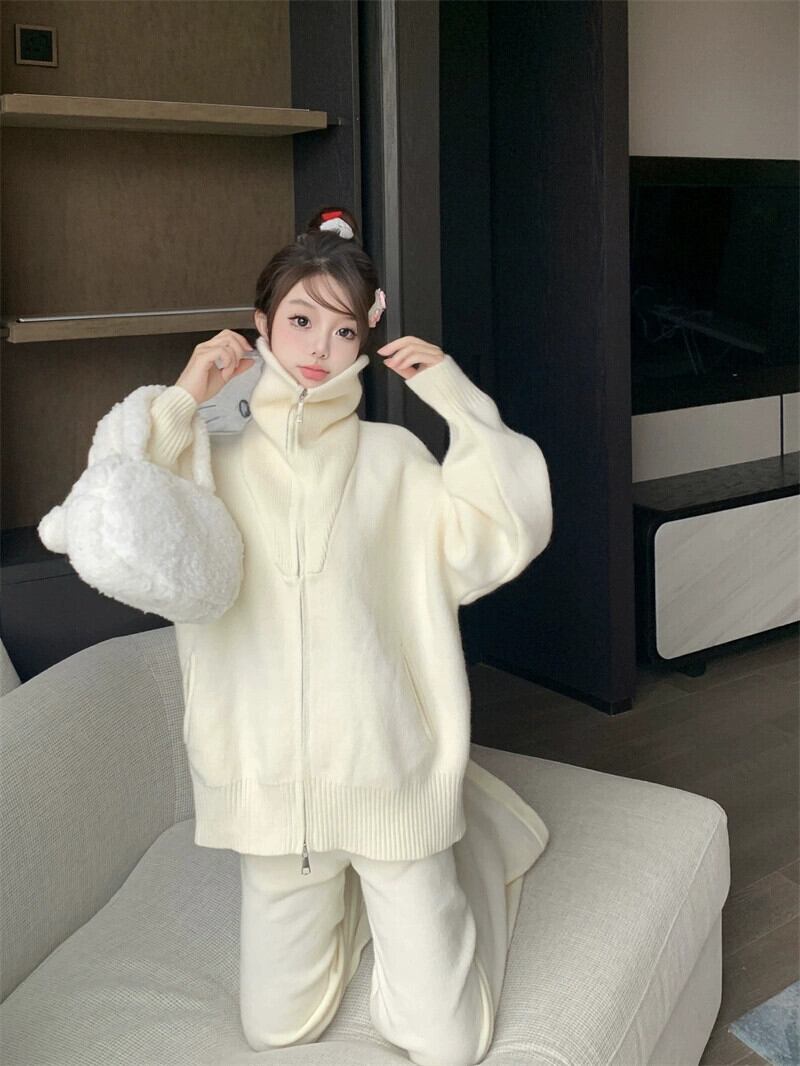 胸スタイル優しいスタイルの衣装セットルーズセータージャケットレディース秋カジュアルワイドレッグパンツニットツーピースセット オータム 秋物 ワイドパンツ bstraw77447501690 | beaute25