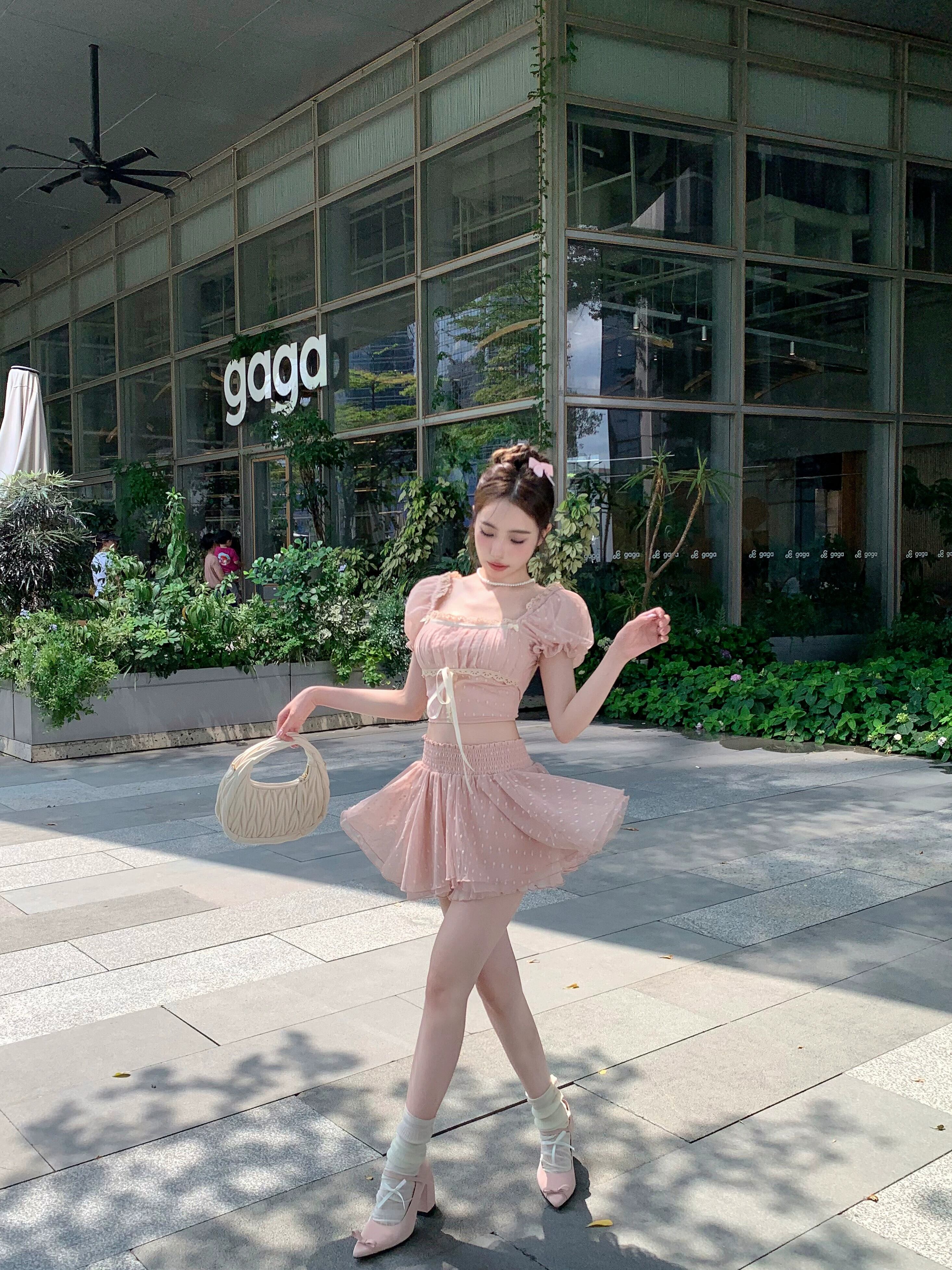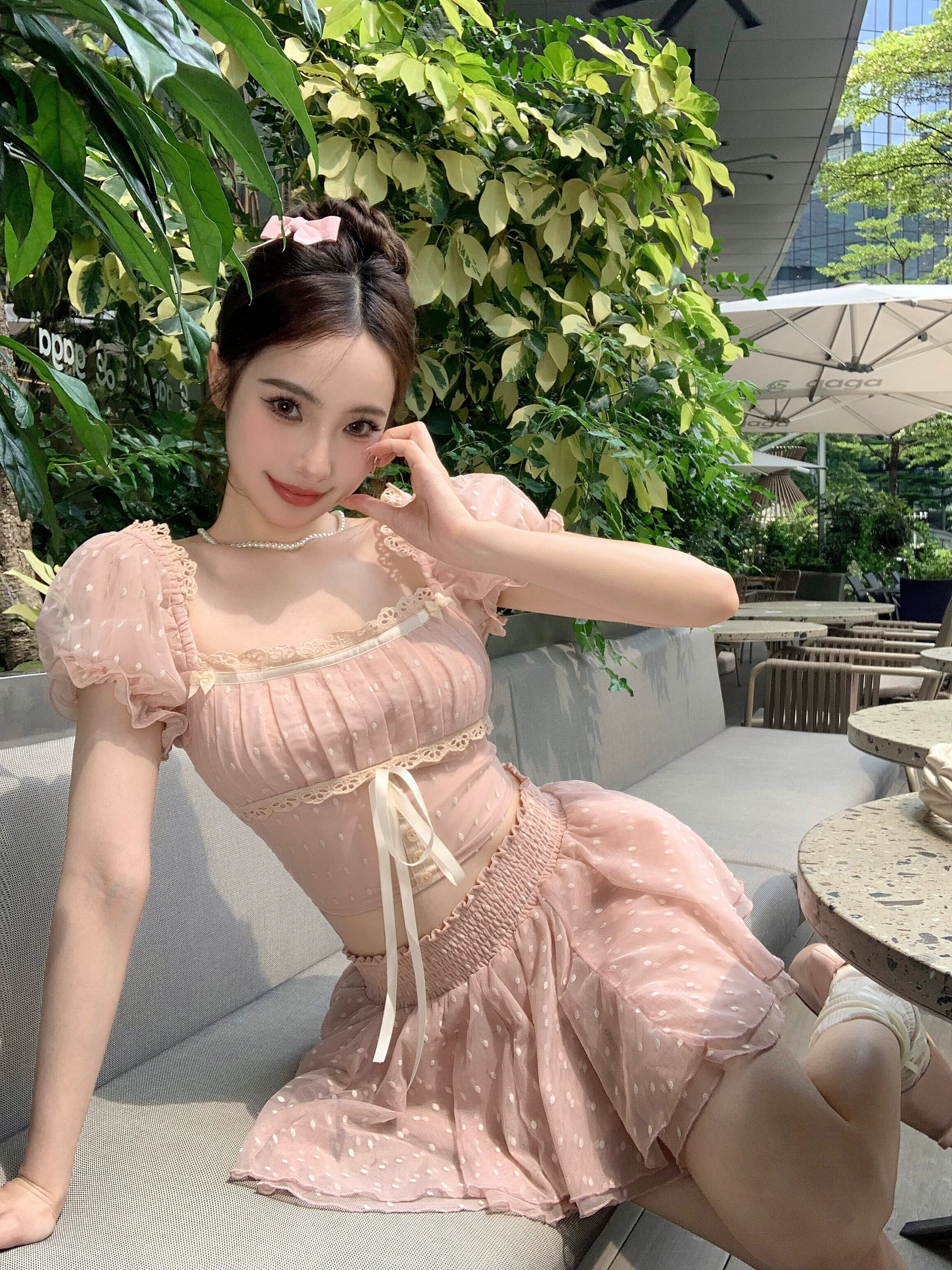 フレンチバレエスタイルスーツ水玉模様スクエアネックパフスリーブトップスレディース夏ハイウエストスカートとキュロット2点セット サマー 夏物 スクウェア bstraw47178445500 | beaute25