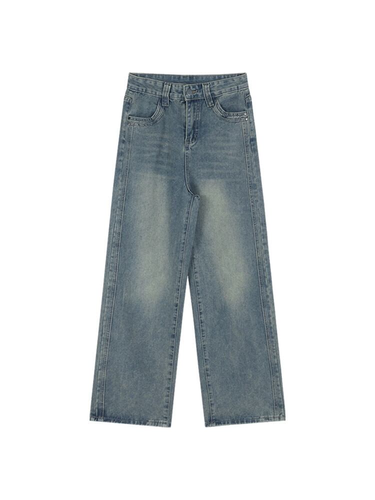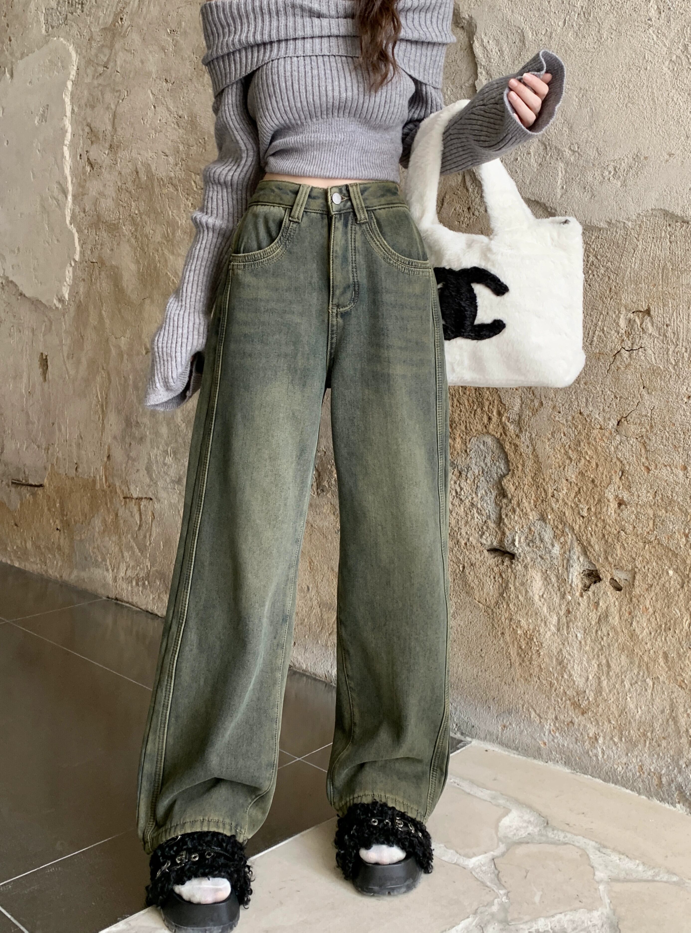 ベルベット肥厚ウォッシュジーンズ女性秋と冬 2023 新しいハイウエストストレートパンツワイドレッグパンツ床モップパンツ ハイウェスト オータム 秋物 ウィンター 冬物 ワイドパンツ bstraw12920567469 | beaute25