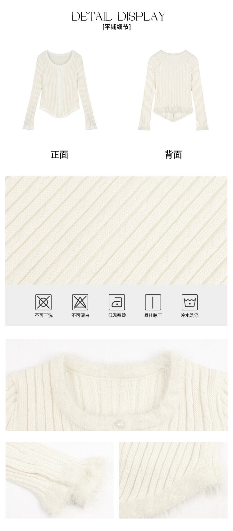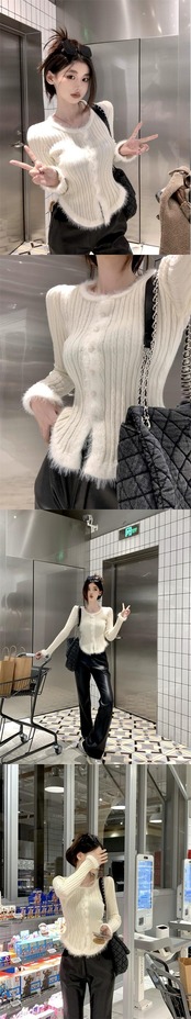 秋冬のオフホワイトのスプライスされたローエッジニットカーディガン、シックなボトムトップ付きの穏やかな風のピットストライプのセーター オータム 秋物 ウィンター 冬物 bstraw32102853920 | beaute25