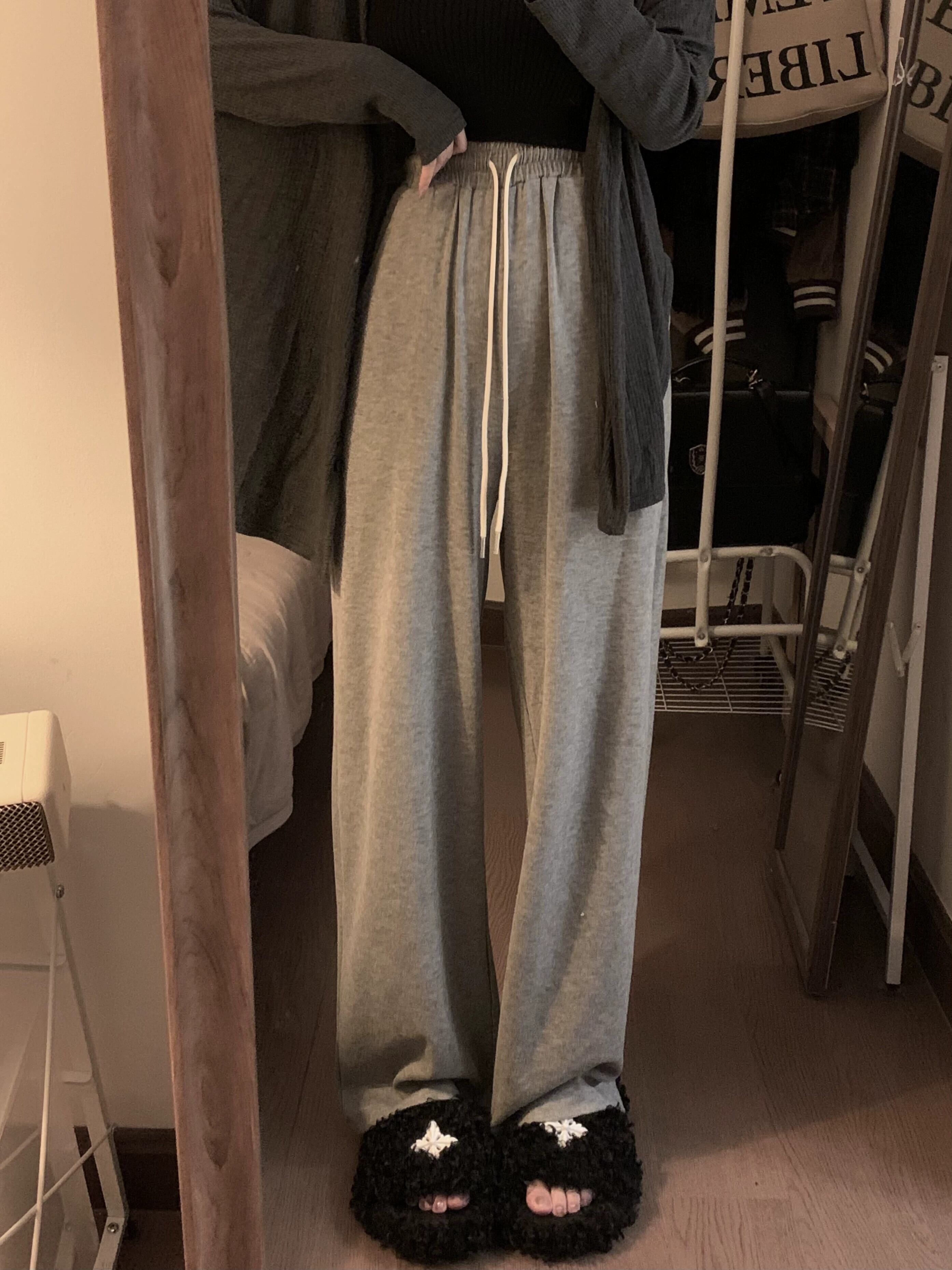 女性の秋と冬のハイウエスト巾着カジュアルパンツ、ベルベットと厚みのあるストレートパンツスタイルのゆったりとしたワイドレッグフロアレングスパンツ オータム 秋物 ウィンター 冬物 bstraw43089859325 | beaute25