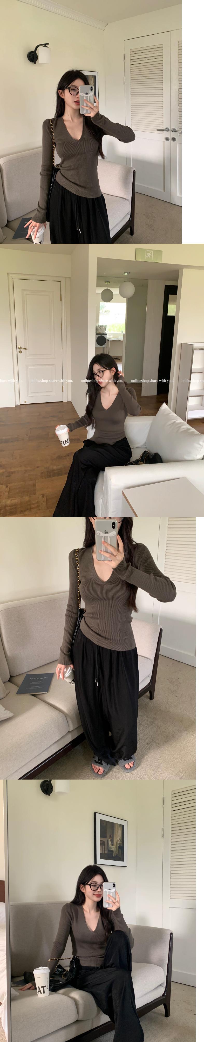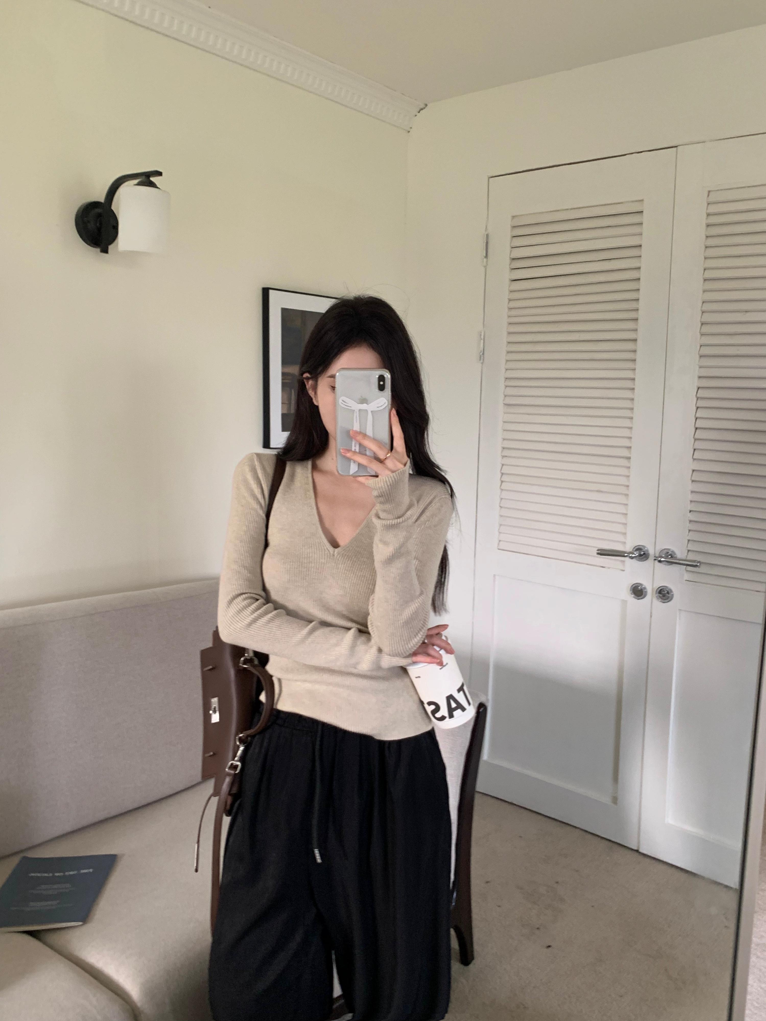 無地長袖ニットボトシャツ女性秋 2023 新しい v ネックプルオーバー多目的セータースリムインナートップ ロング オータム 秋物 Vネック ソリッドカラー bstraw72401733722 | beaute25