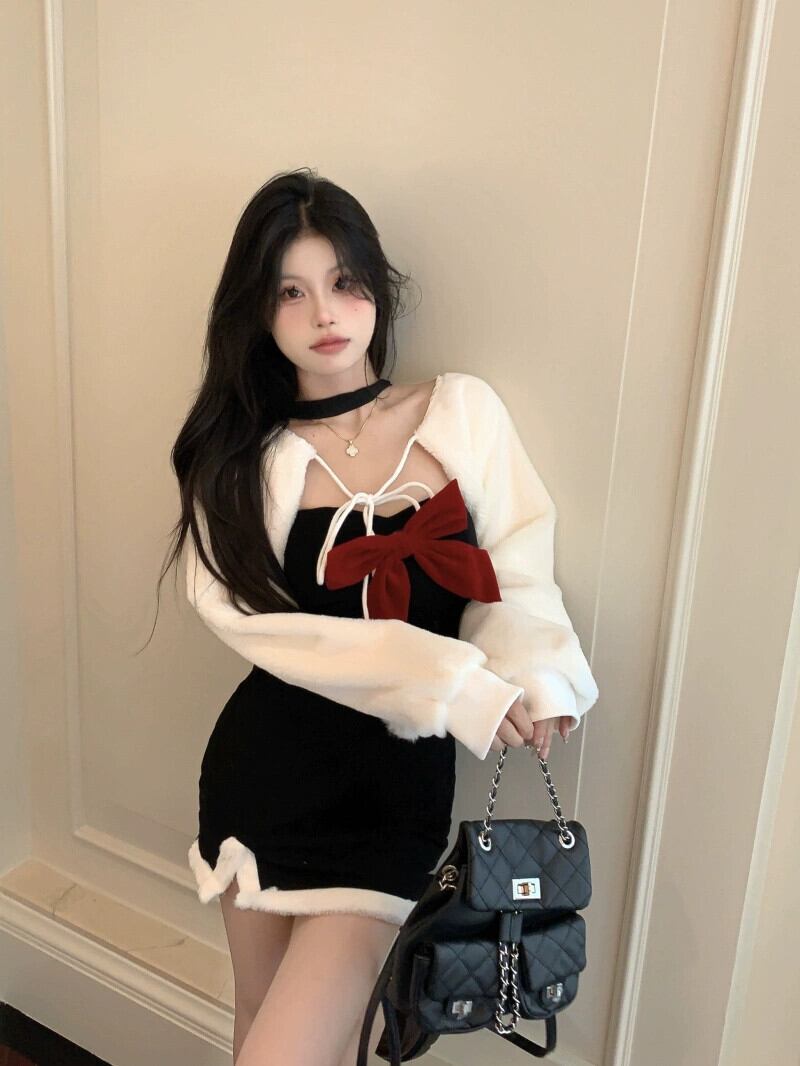 秋と冬のセクシーなチューブトップドレスの女性、甘い黒のリボンスプライシングスカート、ウエストバンドとヒップハグショートスカート ブラック 大人ガーリー スウィート キュート カジュアル オータム 秋物 ウィンター 冬物 bstraw2636746793 | beaute25