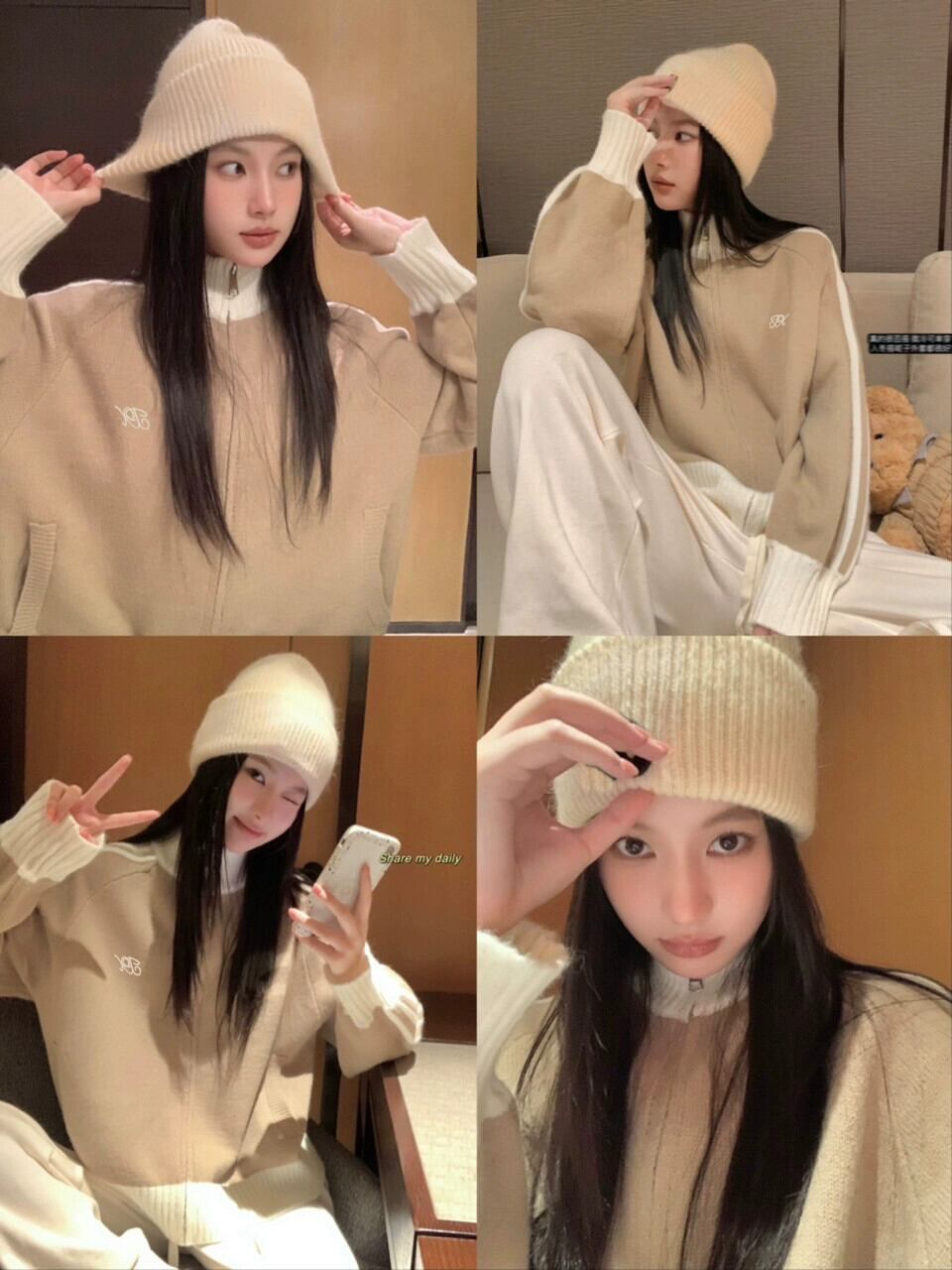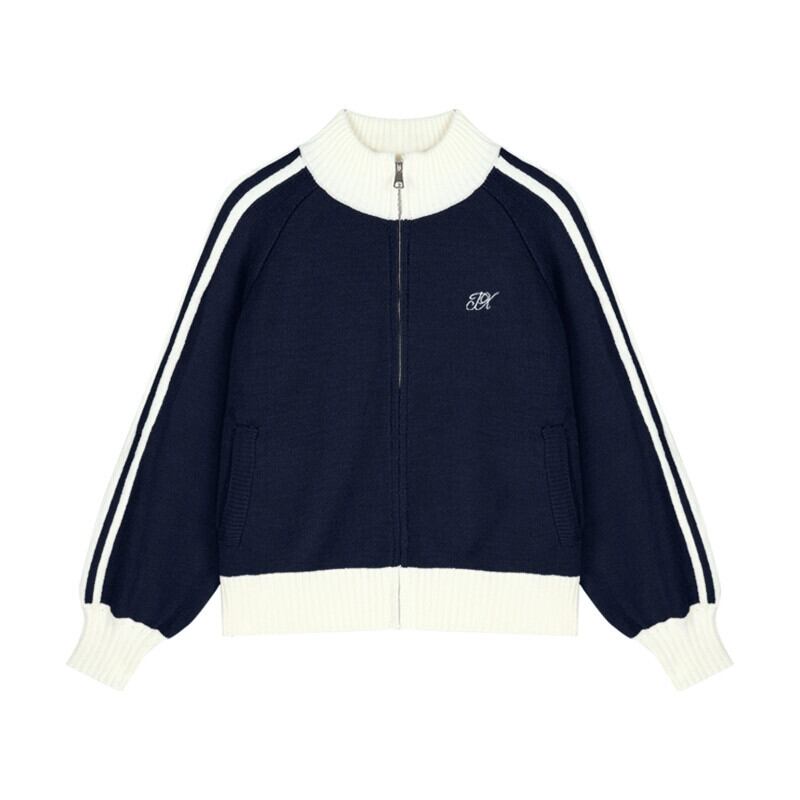 アメリカのコントラストカラー長袖スタンドカラーセータージャケット女性秋と冬 2023 新しい緩い野球ユニムカーディガンジッパートップ ロング オータム 秋物 ウィンター 冬物 bstraw31887339439 | beaute25