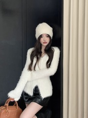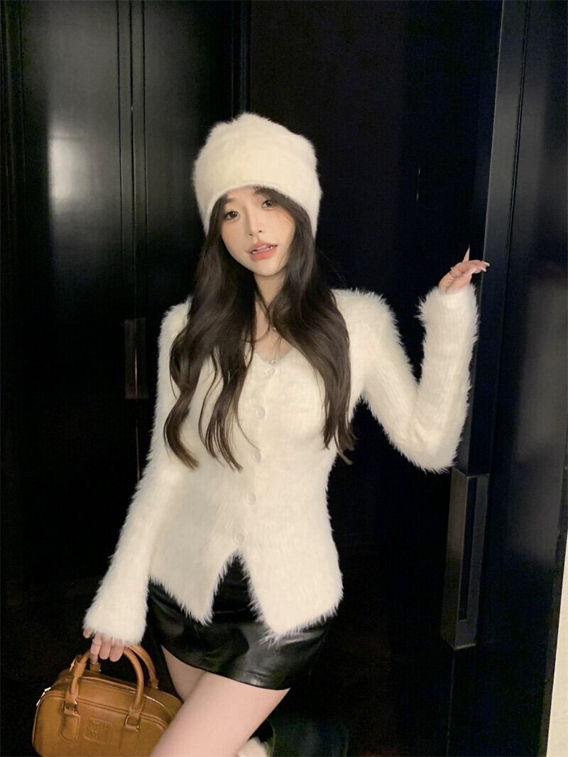 秋冬の豪華な V ネック長袖ニット カーディガン、柔らかく優しいスタイルのスリム セーター、外で着るのにとても素敵なトップス ロング オータム 秋物 ウィンター 冬物 Vネック bstraw7907874302 | beaute25