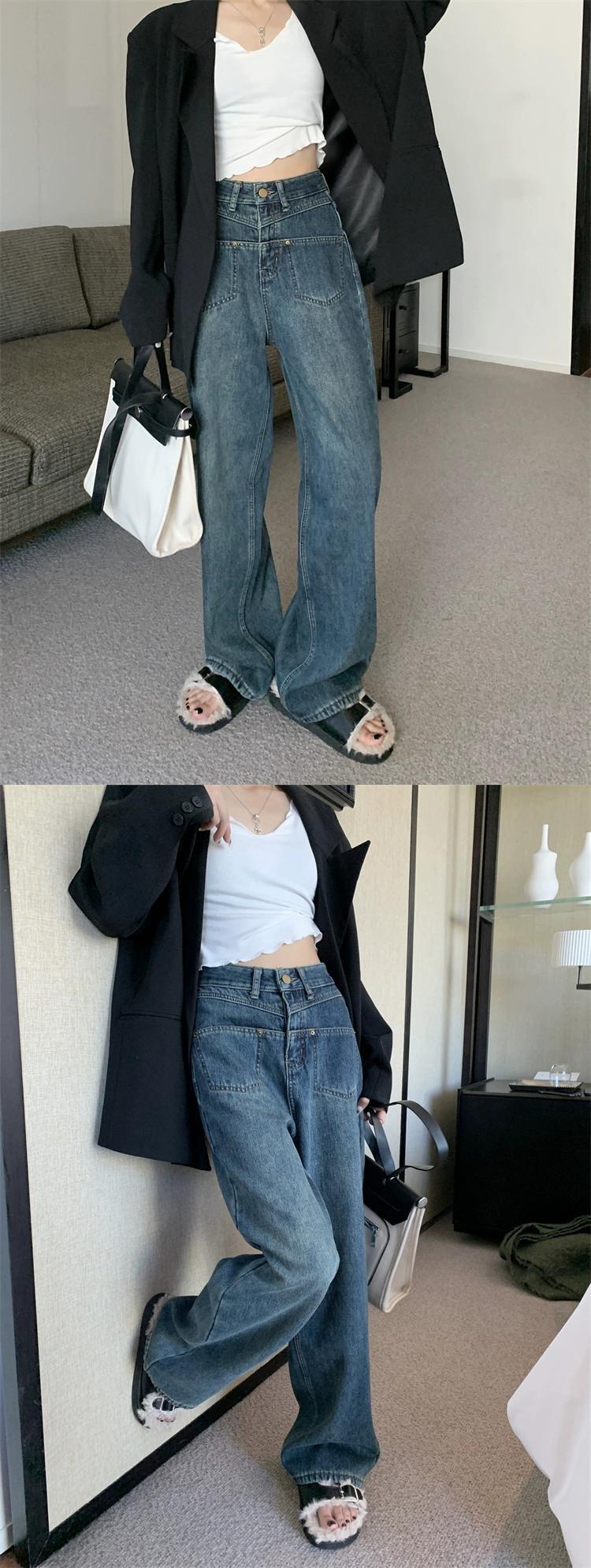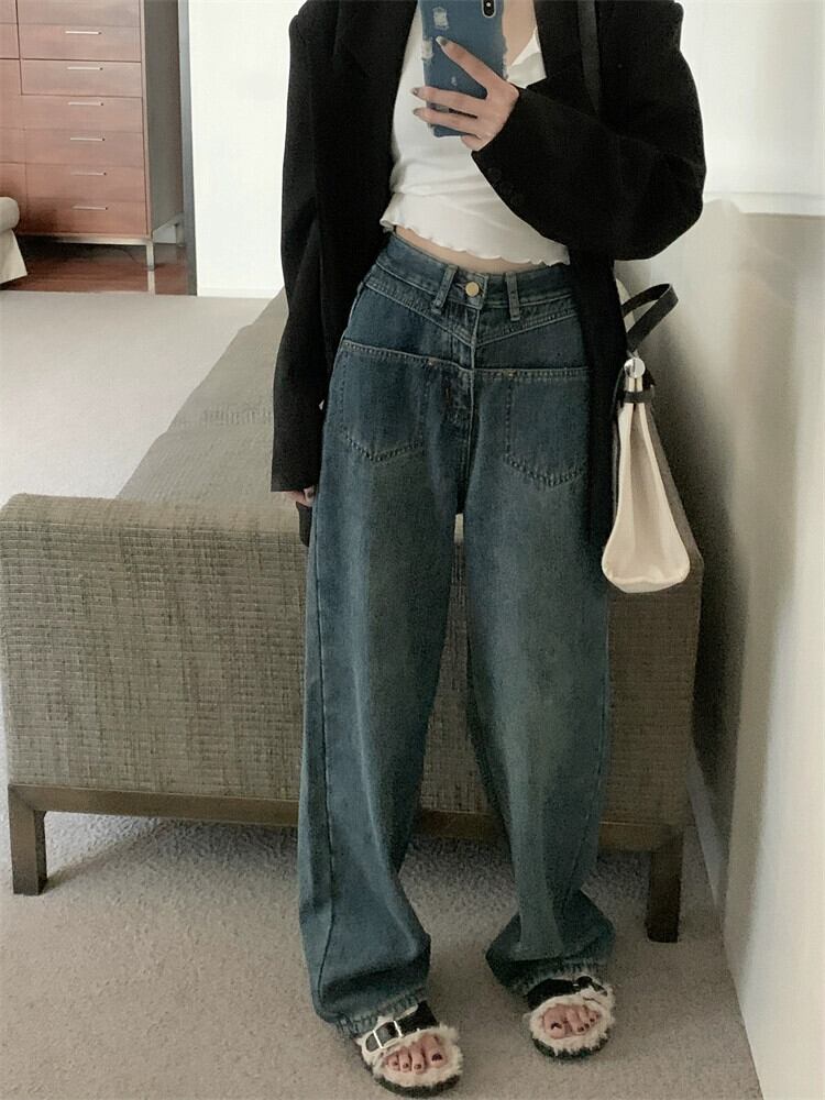 秋冬のベルベットの厚みのあるジーンズの女性、レトロなハイウエストのスリムストレートパンツ、ゆったりとした暖かいワイドレッグのフロアレングスパンツ オータム 秋物 ウィンター 冬物 bstraw8201540954 | beaute25