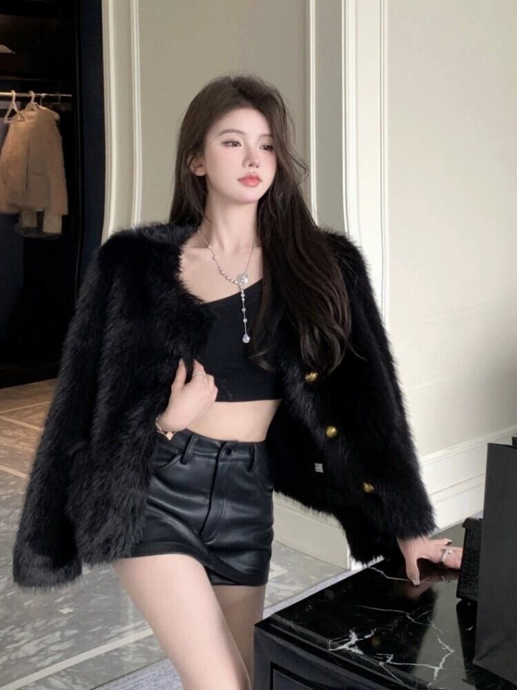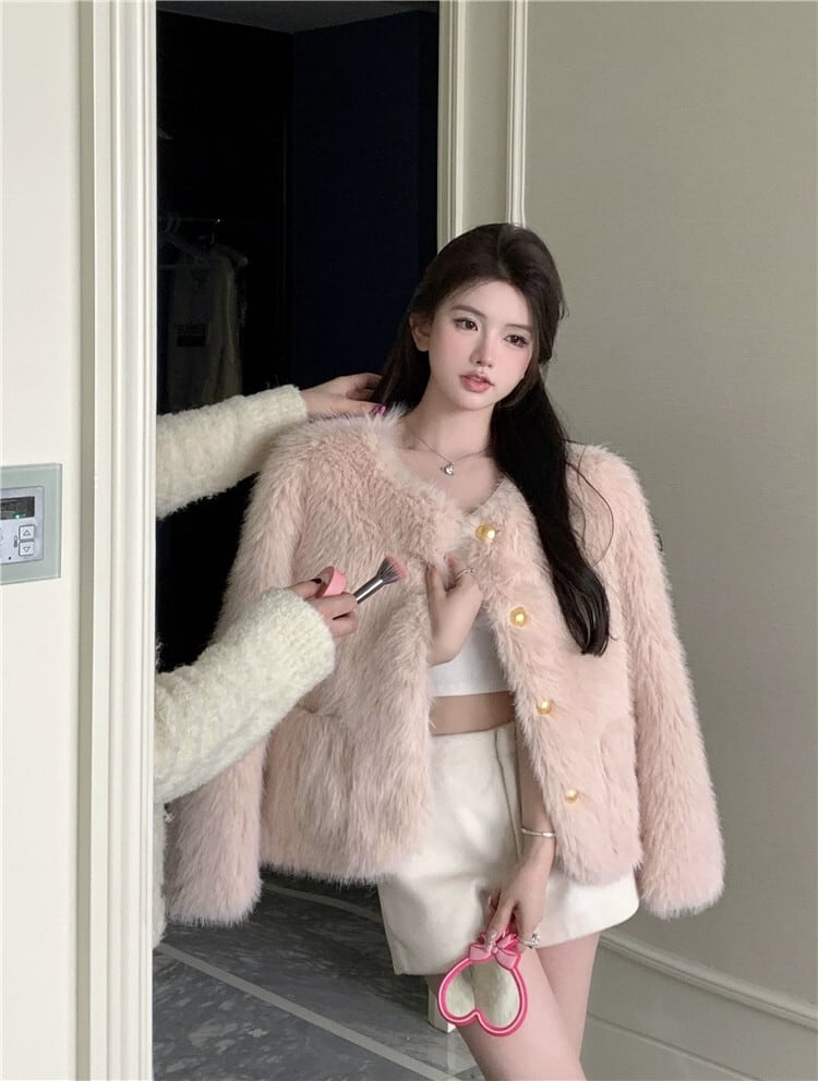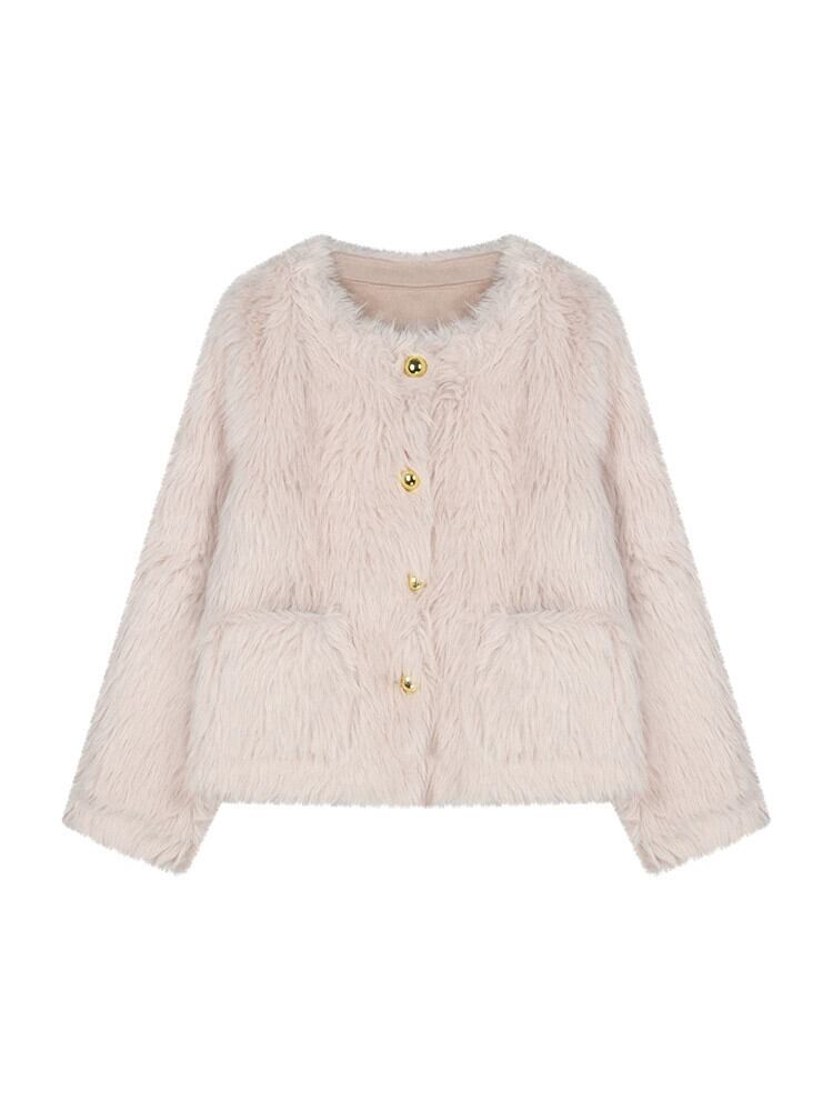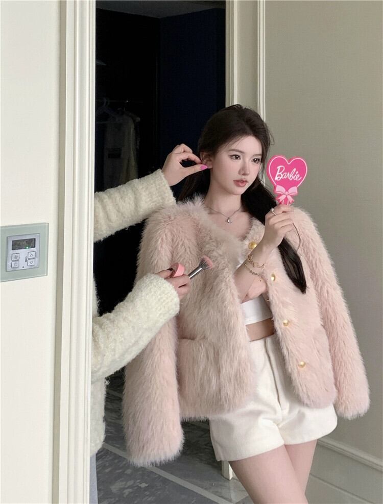 ピンクの毛皮オールインワン環境に優しい毛皮のコートの女性の秋と冬の毛皮のようなハイエンドの緩い肥厚毛皮のトップ オータム 秋物 ウィンター 冬物 bstraw18336341936 | beaute25