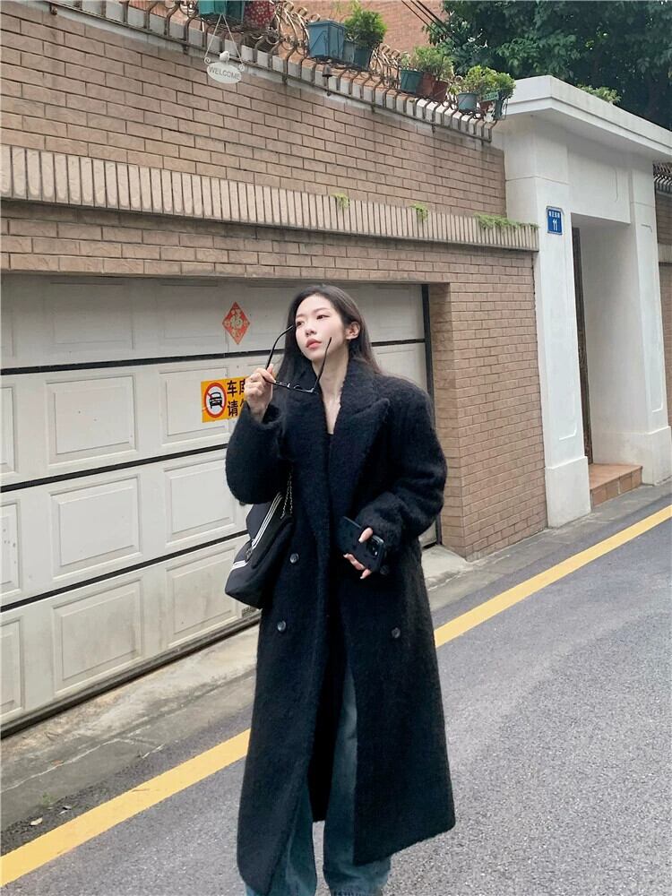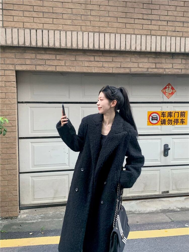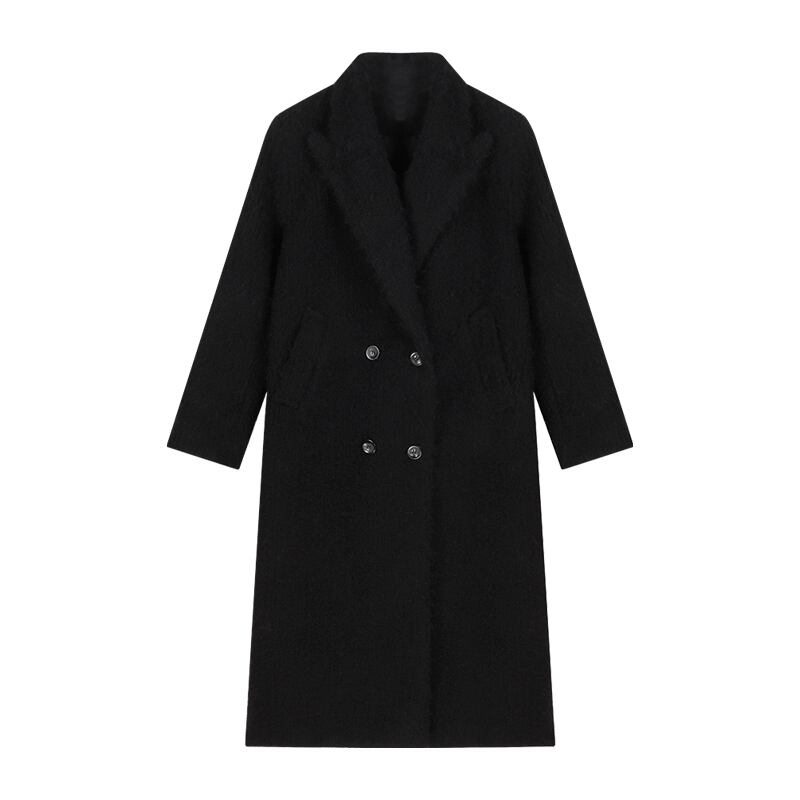 ヘップバーンスタイル黒厚いウインドブレーカーウールコートレディース秋冬新作コートルーズミッドレングス膝上トップ ブラック オータム 秋物 ウィンター 冬物 bstraw43795484359 | beaute25