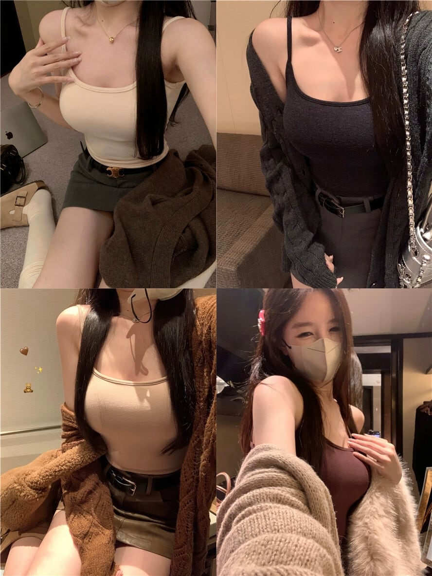 乳房パッド付きの秋冬のミルクブルーの起毛キャミソール女性、スリムフィットのショートインナーレイヤリングシャツ、純粋な欲望のセクシーなトップ オータム 秋物 ウィンター 冬物 ピュア bstraw9683121839 | beaute25