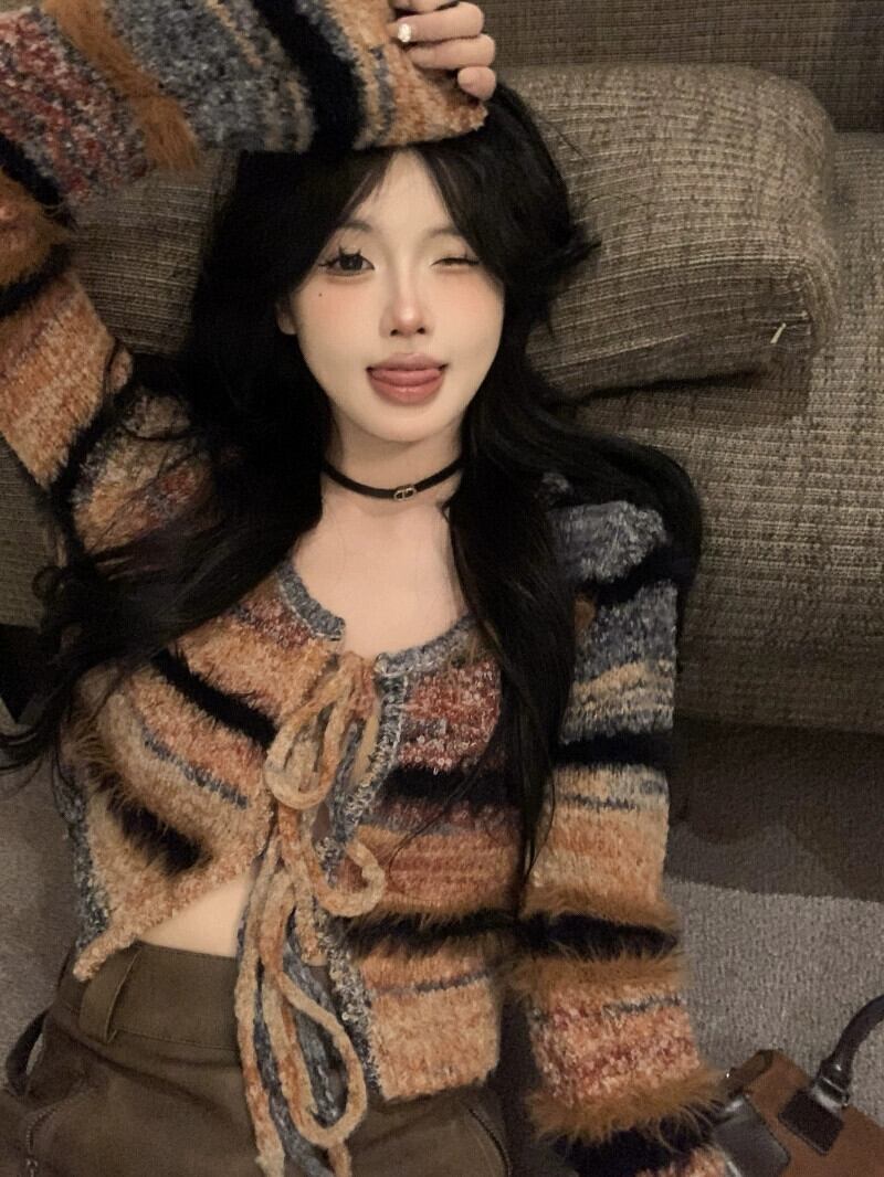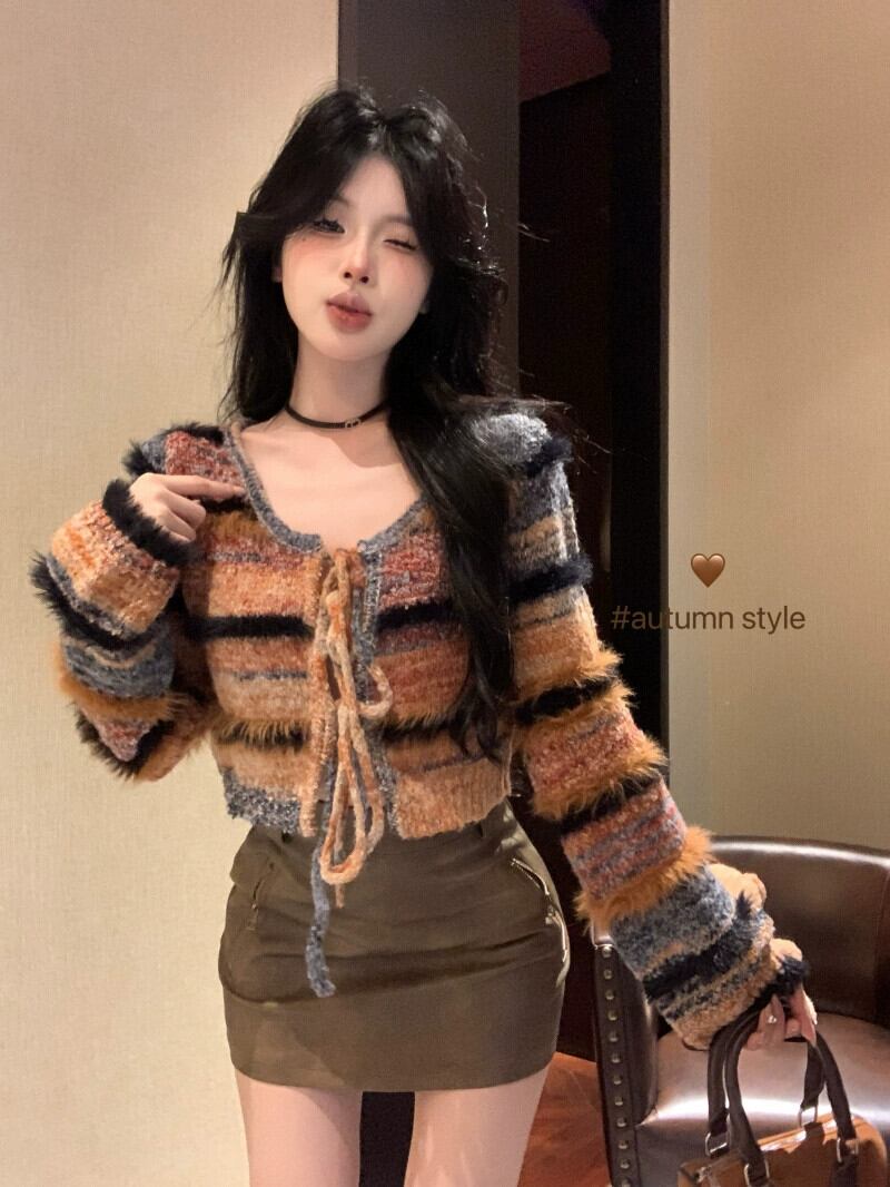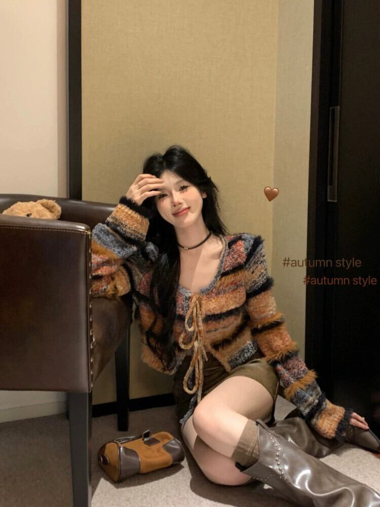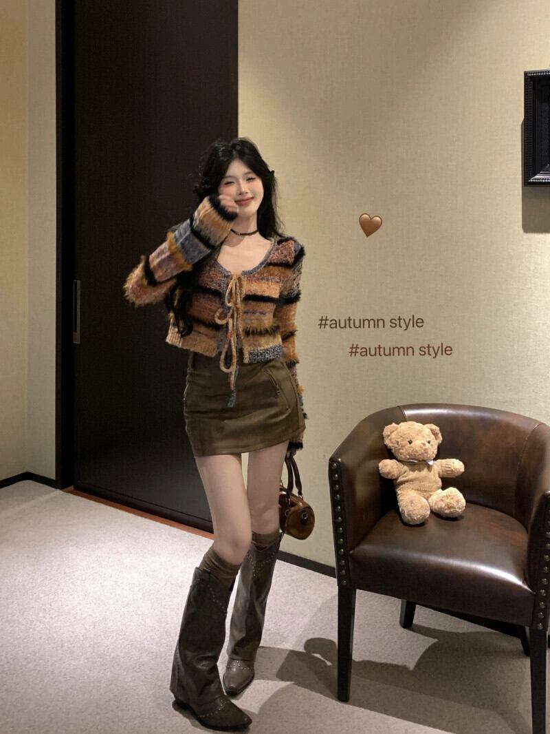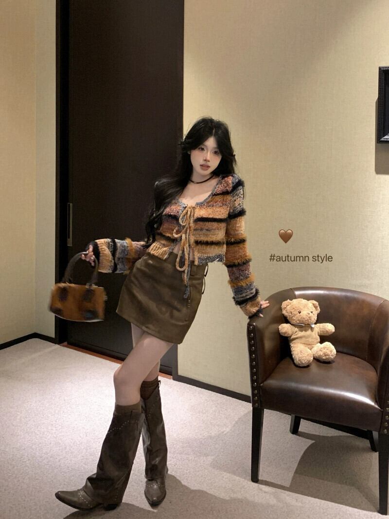 色:セーターカーディガン,レザースカート