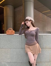 色:グレートップ,薄茶スカート