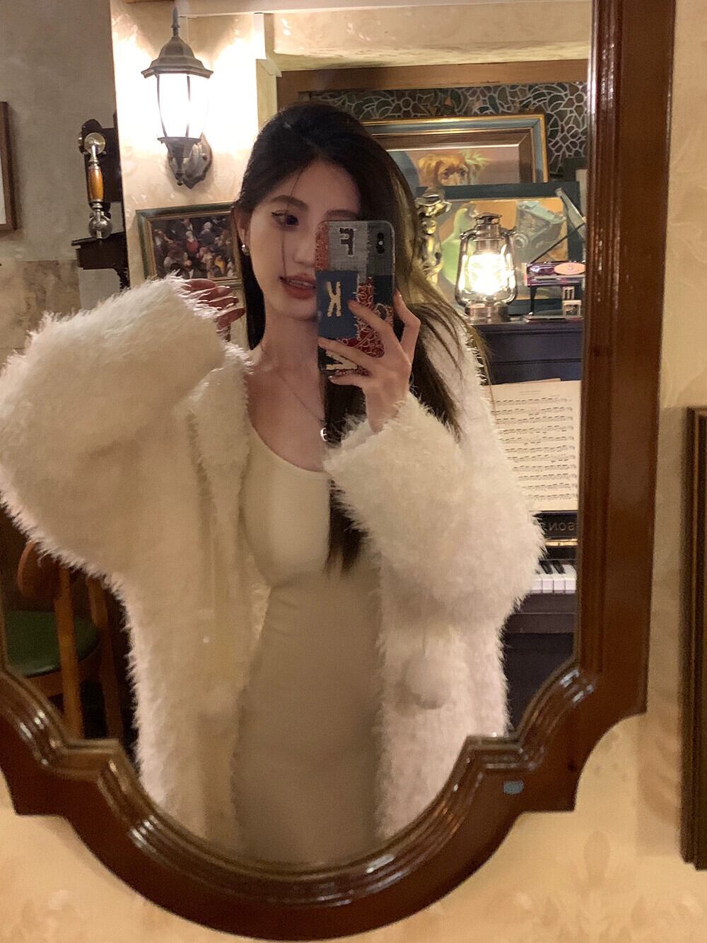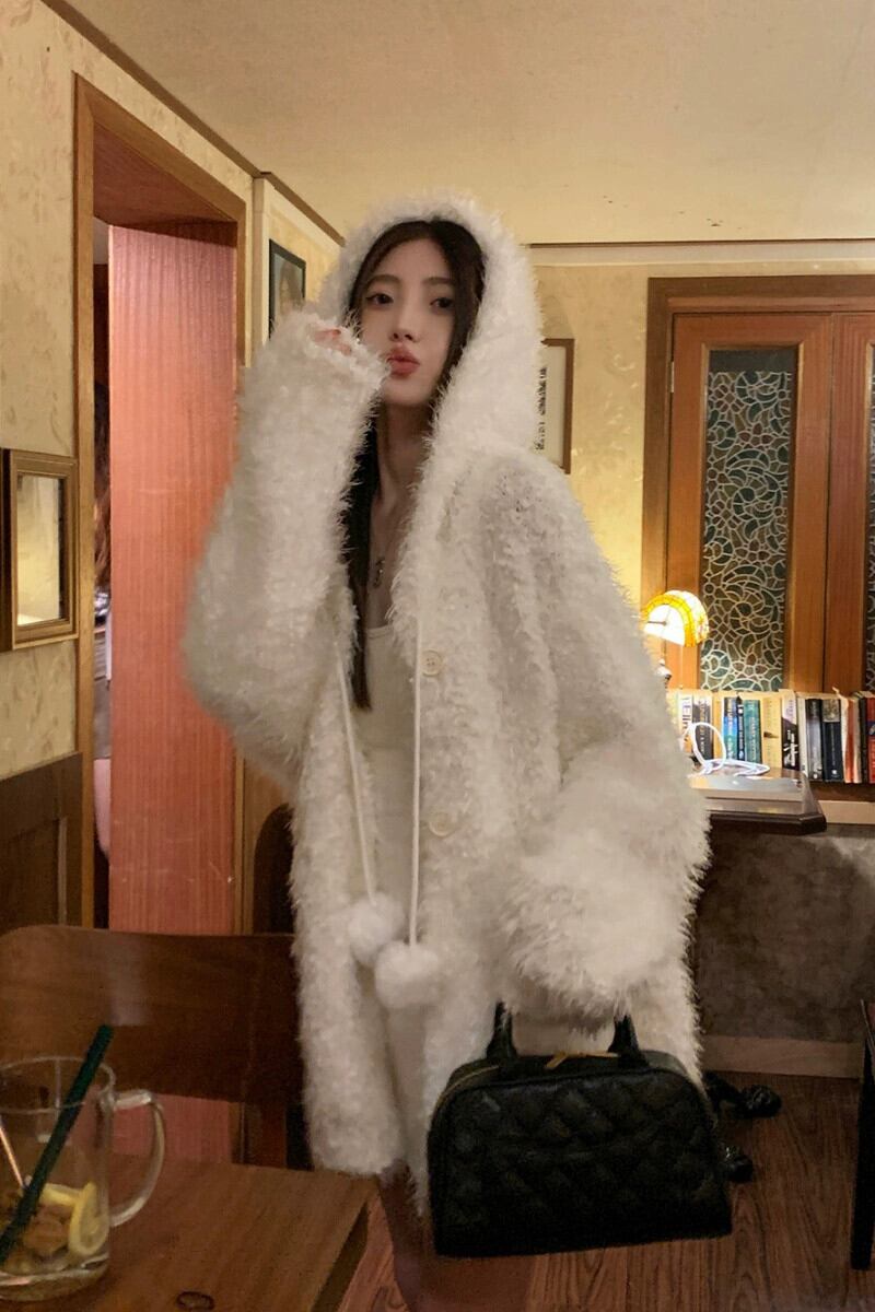 模造ミンクベルベットのフード付き肥厚セータージャケット女性の秋と冬のゆるい怠惰なスタイルニットカーディガン胸トップ オータム 秋物 ウィンター 冬物 bstraw41513346949 | beaute25