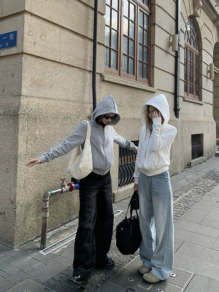 ホワイトベルベット肥厚フード付きスウェットシャツジャケット女性の秋と冬アメリカンスリムショート長袖カーディガンジッパートップ ロング オータム 秋物 ウィンター 冬物 bstraw93702616307 | beaute25