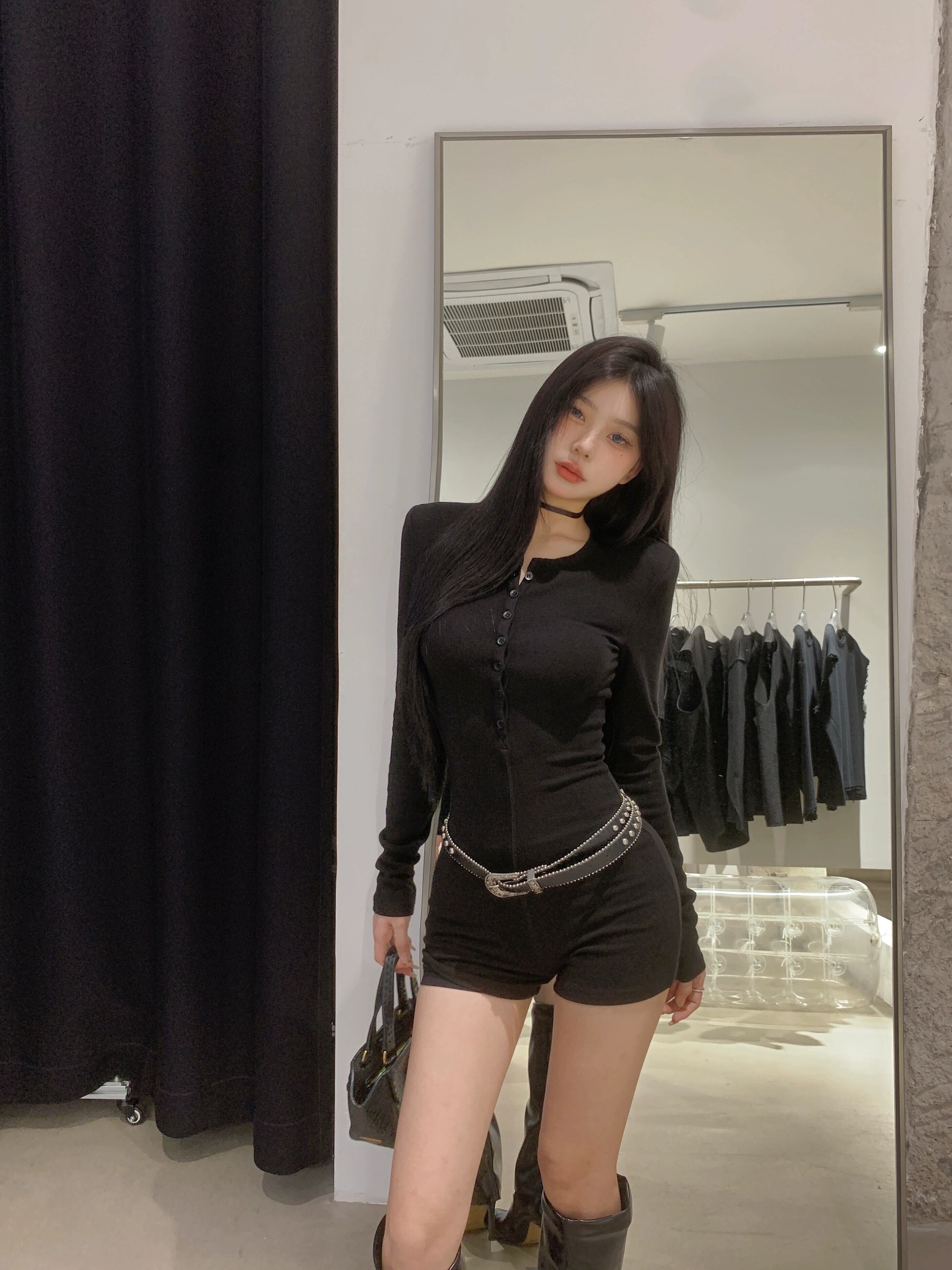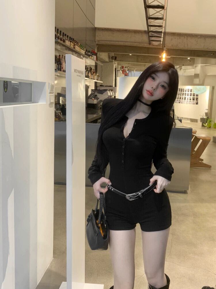 色:ダイヤモンドベルト,黒のジャンプスーツ