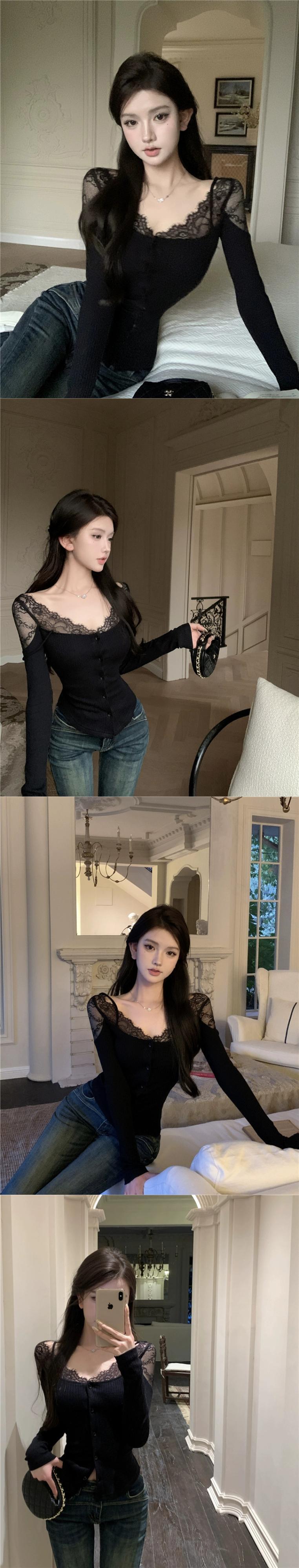 レースステッチショートニットカーディガン女性の秋と冬のスリム長袖インナーセーター白のセクシーなボトミングトップ ロング ホワイト オータム 秋物 ウィンター 冬物 bstraw36876263470 | beaute25