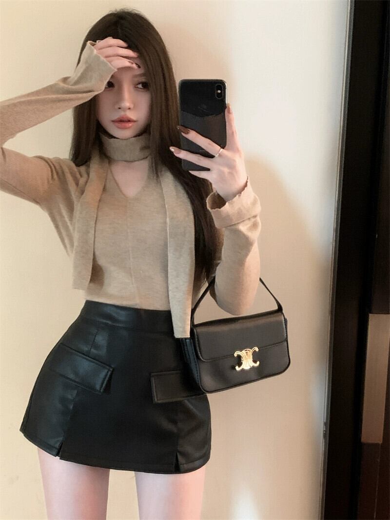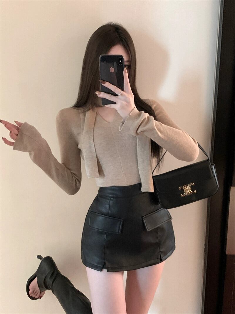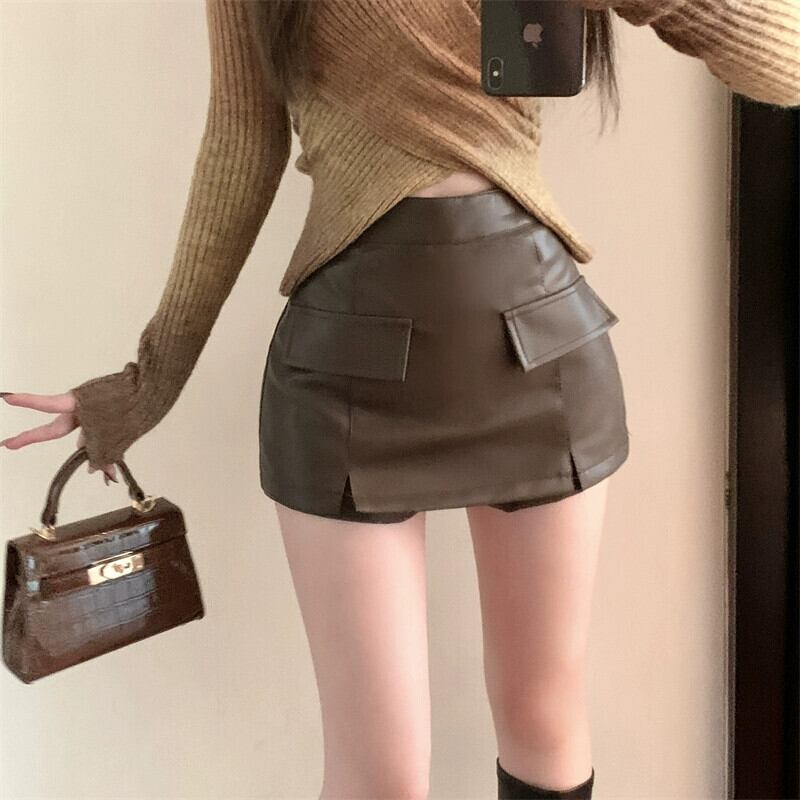 露出防止 pu レザースカートの女性の秋と冬の 2023 新しい黒キュロットタイトスカートヒップカバーショートスカート ブラック オータム 秋物 ウィンター 冬物 bstraw4923056336 | beaute25