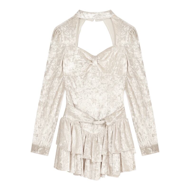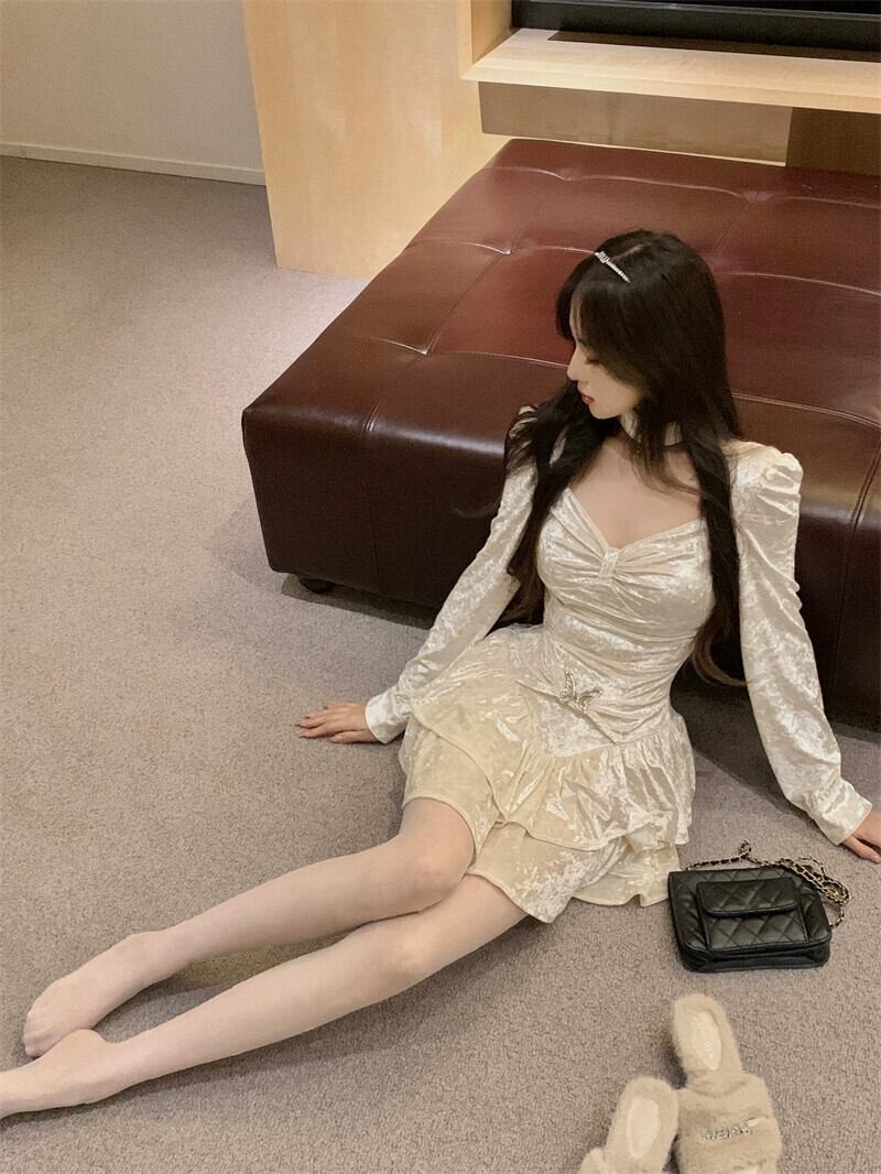 ベルベット ホルター ドレス レディース 秋と冬 - 気質誕生日スカート ゴールデン スタイル ウエスト ケーキ スカート オータム 秋物 ウィンター 冬物 bstraw11166102265 | beaute25