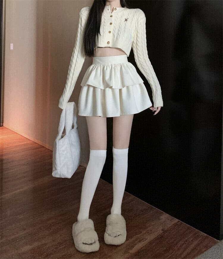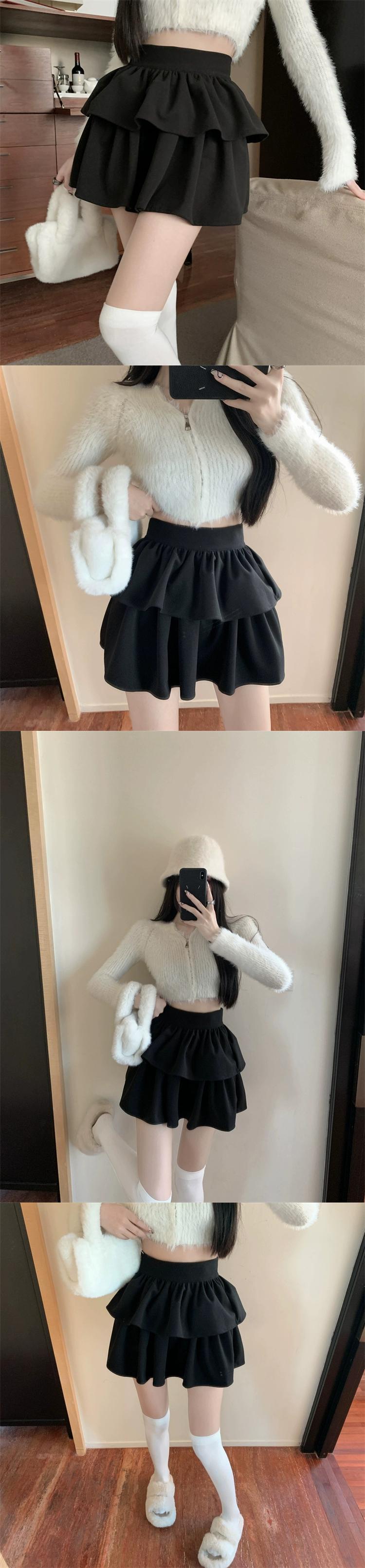 秋冬の白いウールのスカートの女性、フリル付きハイウエストふくらみスカート、露出防止ケーキスカート、Aラインショートスカート ホワイト オータム 秋物 ウィンター 冬物 bstraw20607456419 | beaute25