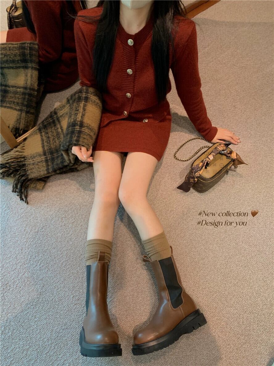 赤いセーター ニット カーディガンを着る小さな人々 の完全なセットの女性の秋と冬のヒップハグ スカートとショート スカート 2 点セット レッド オータム 秋物 ウィンター 冬物 bstraw94911984325 | beaute25