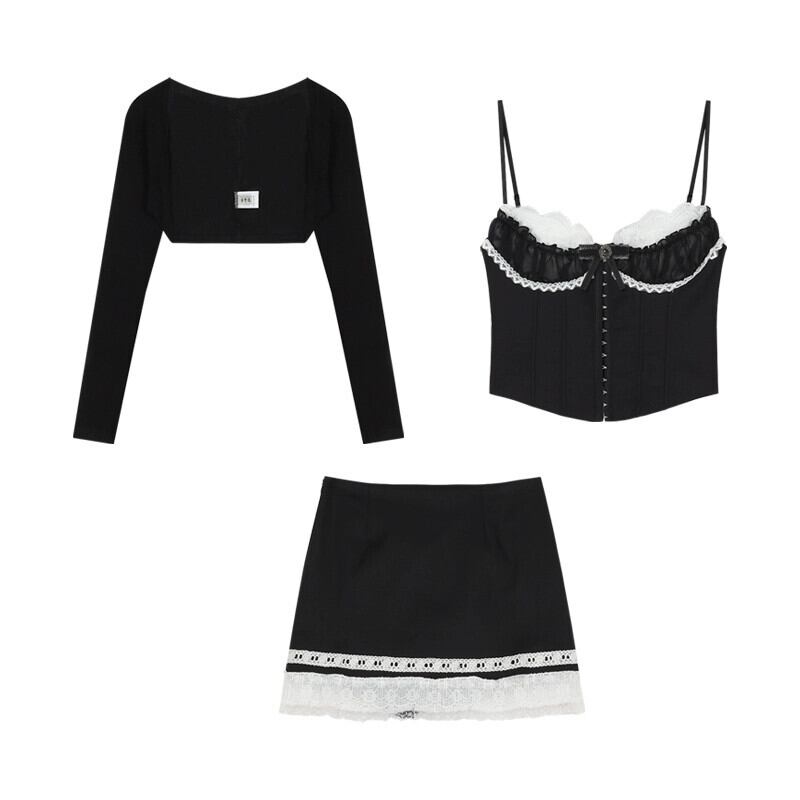 色:レーススリング,黒チョッキ,黒スカート,ボウブローチ