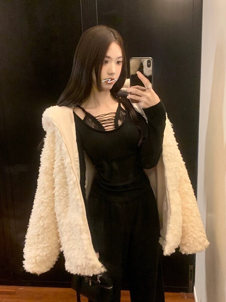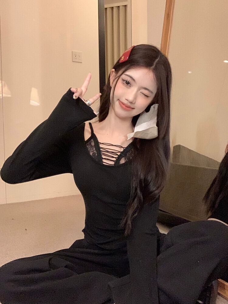 フェイクツーピーススプライシングレース長袖Tシャツレディース春先ピンクタイトショートインナートップ胸パッド付きボトリングシャツ ロング スプリング 春物 bstraw21755627641 | beaute25