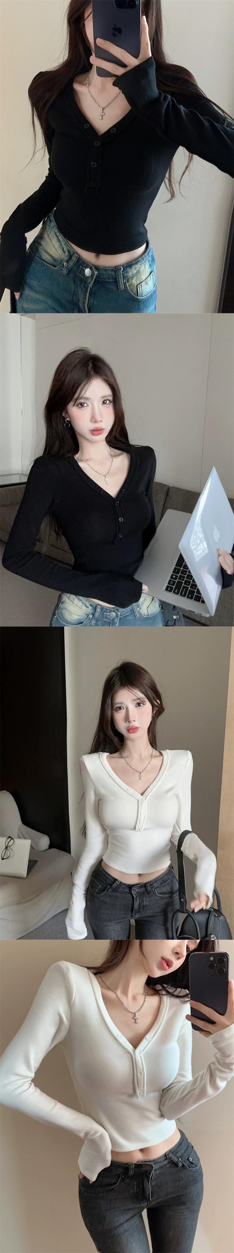 起毛ショルダーパッド長袖 V ネック T シャツレディース秋冬インナーレイヤリングシャツ無地スリムフィットスリミングショートトップ ロング オータム 秋物 ウィンター 冬物 Vネック Tシャツ ソリッドカラー bstraw61254631035 | beaute25