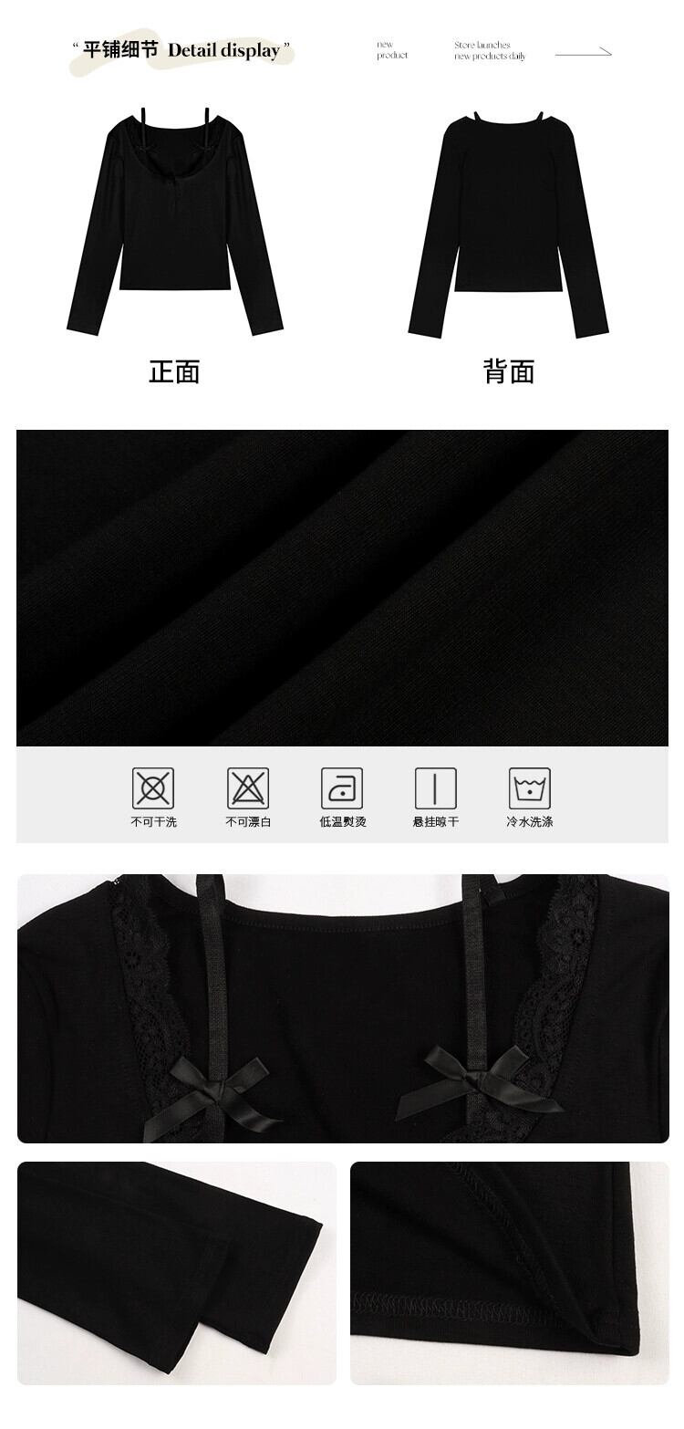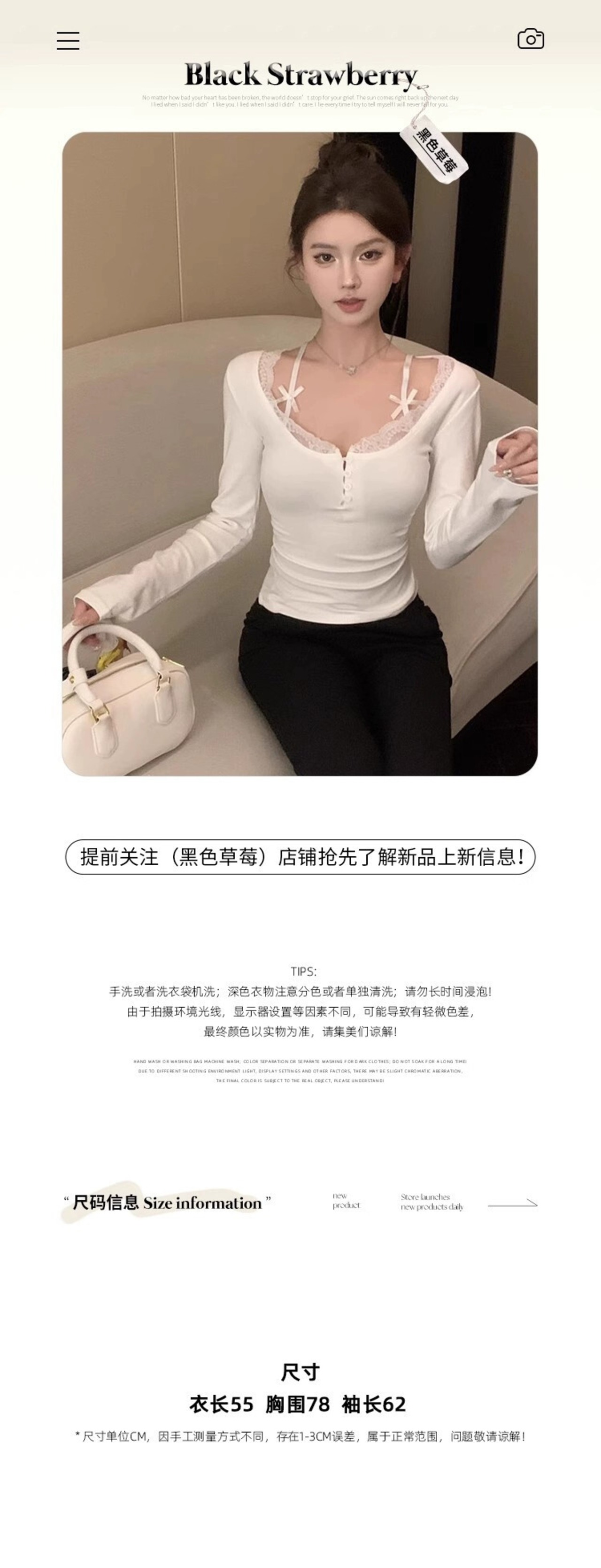 秋と冬の白いレースの長袖 T シャツの女性、ツーピース U ネックのセクシーな純粋な欲望のスリムフィット ボトリング シャツ トップ ロング ホワイト オータム 秋物 ウィンター 冬物 Tシャツ ピュア bstraw39581252096 | beaute25