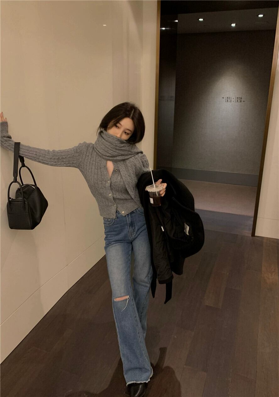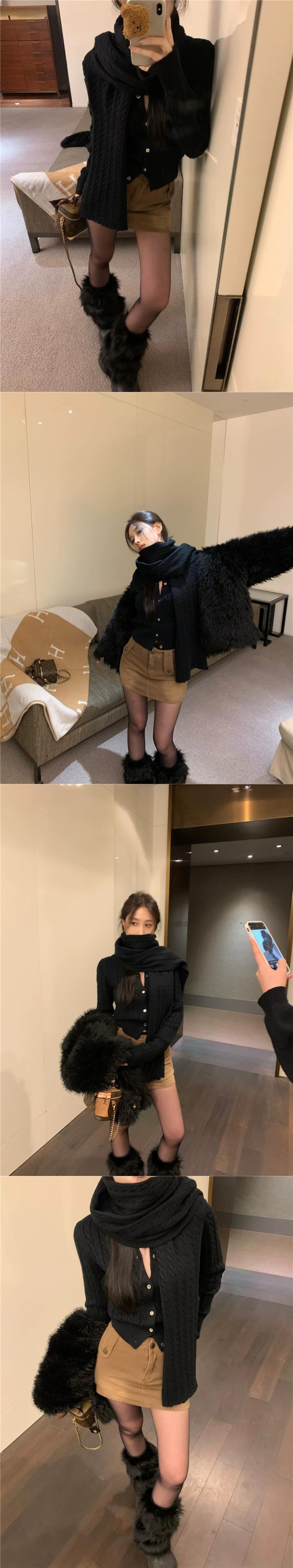 色:グレーのスカーフ,黒いスカーフ,グレーのセーター,黒いセーター