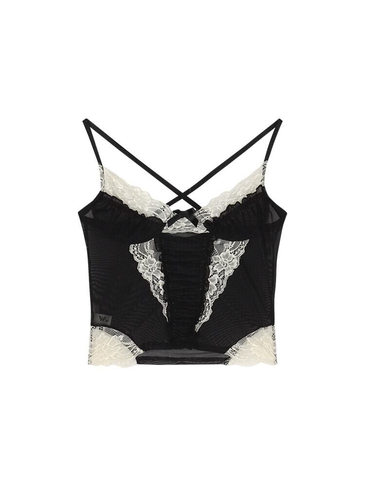 レーススプライシングメッシュキャミソール女性の夏純粋なセクシーなセクシーなインナーフィッシュボーンウエストショートシックなトップ サマー 夏物 ピュア bstraw35517356988 | beaute25