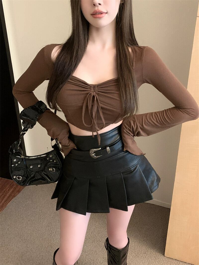 Pu レザースカートプリーツスカート女性の春の新作ハイウエストスリム黒スカートプチ A ラインショートスカート ブラック スプリング 春物 Aライン bstraw48483720470 | beaute25