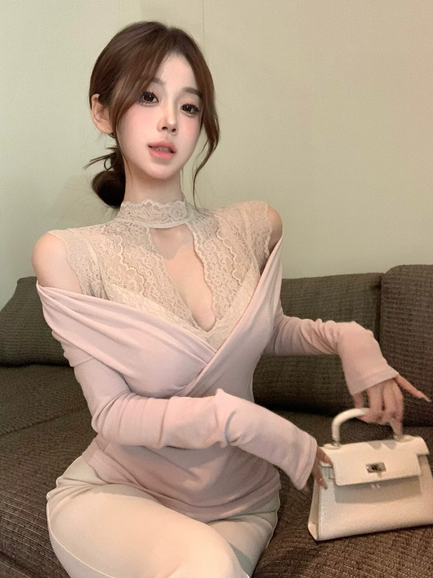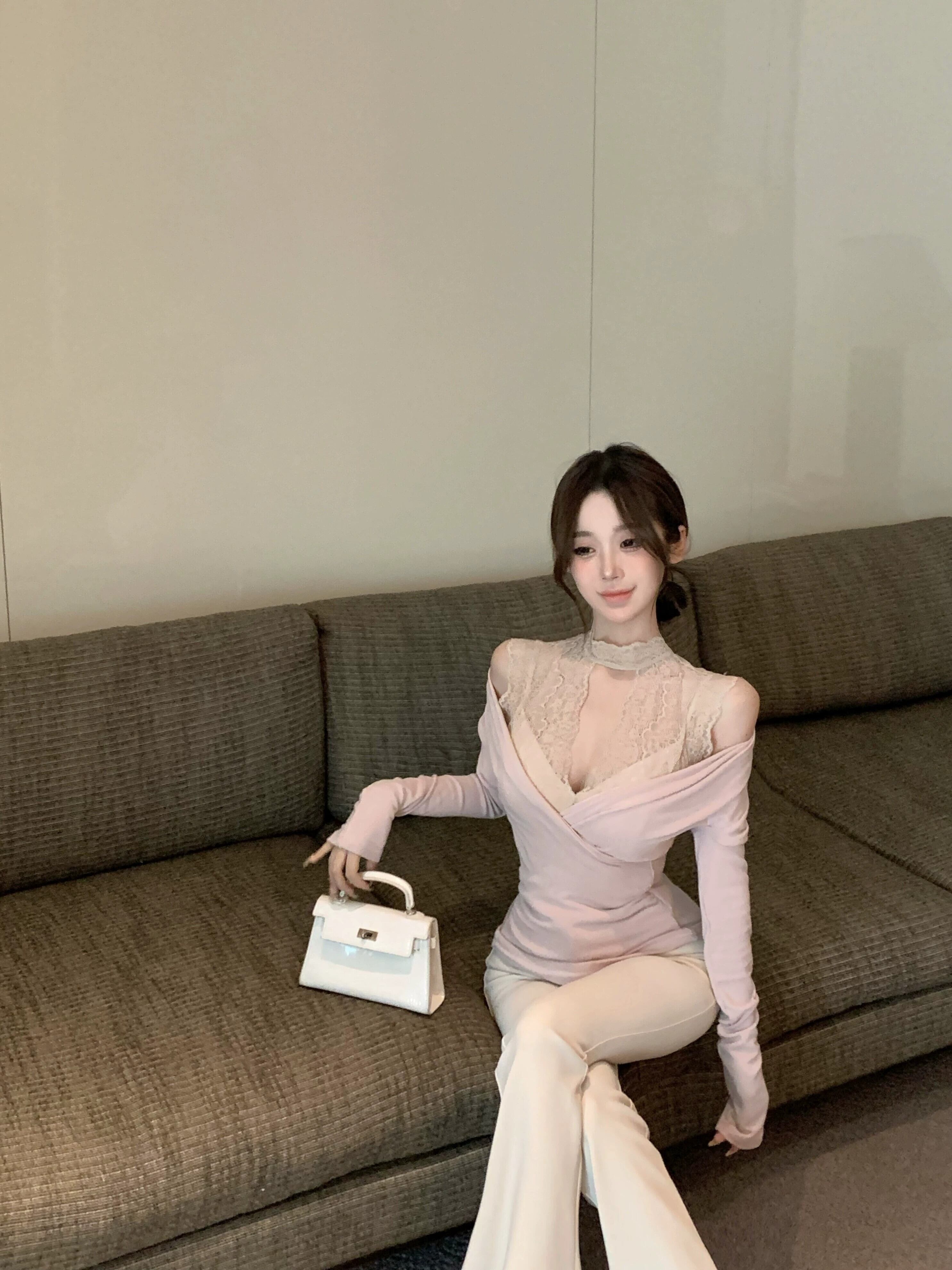 ピンククロス V ネック長袖 Tシャツレディース春の新スタイルウエスト痩身インナー重ね着純粋な欲望の甘辛ボトリングシャツトップ ロング 大人ガーリー スウィート キュート カジュアル スプリング 春物 Vネック ピュア bstraw50118719996 | beaute25