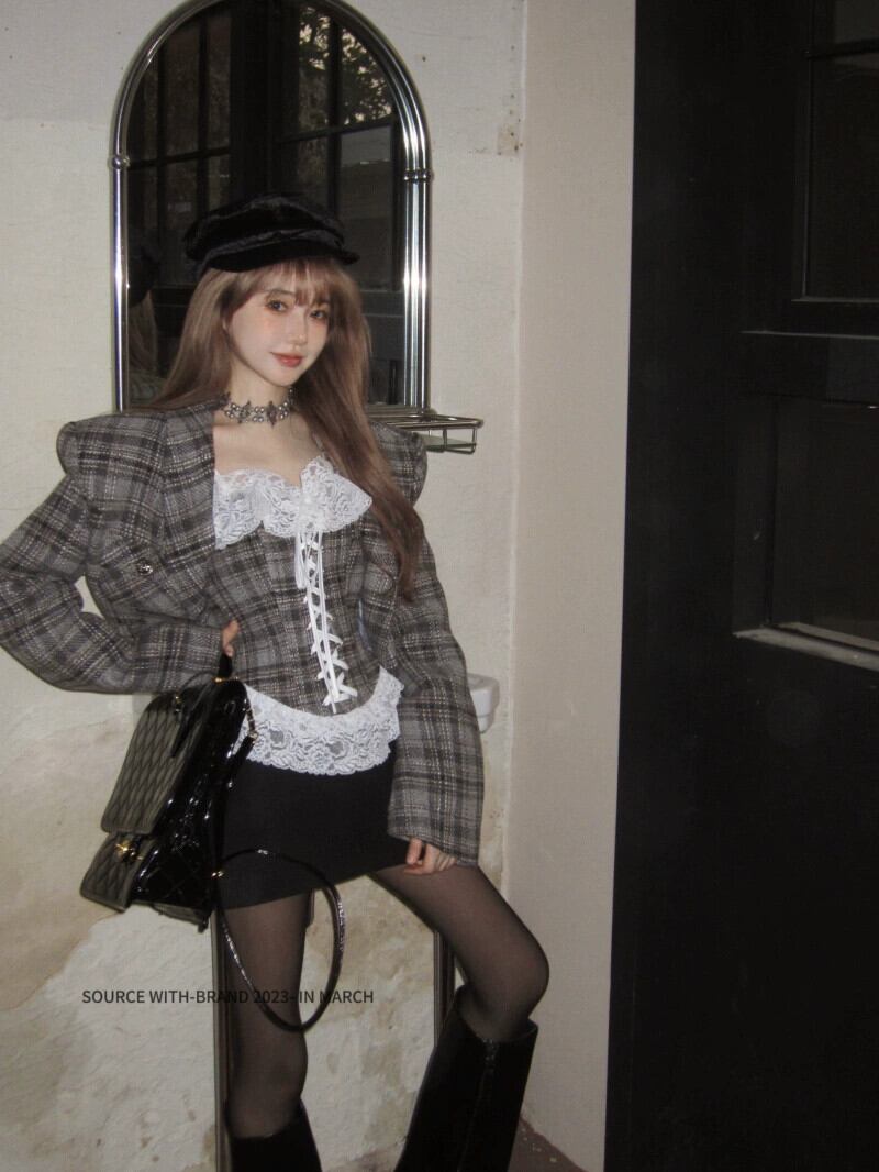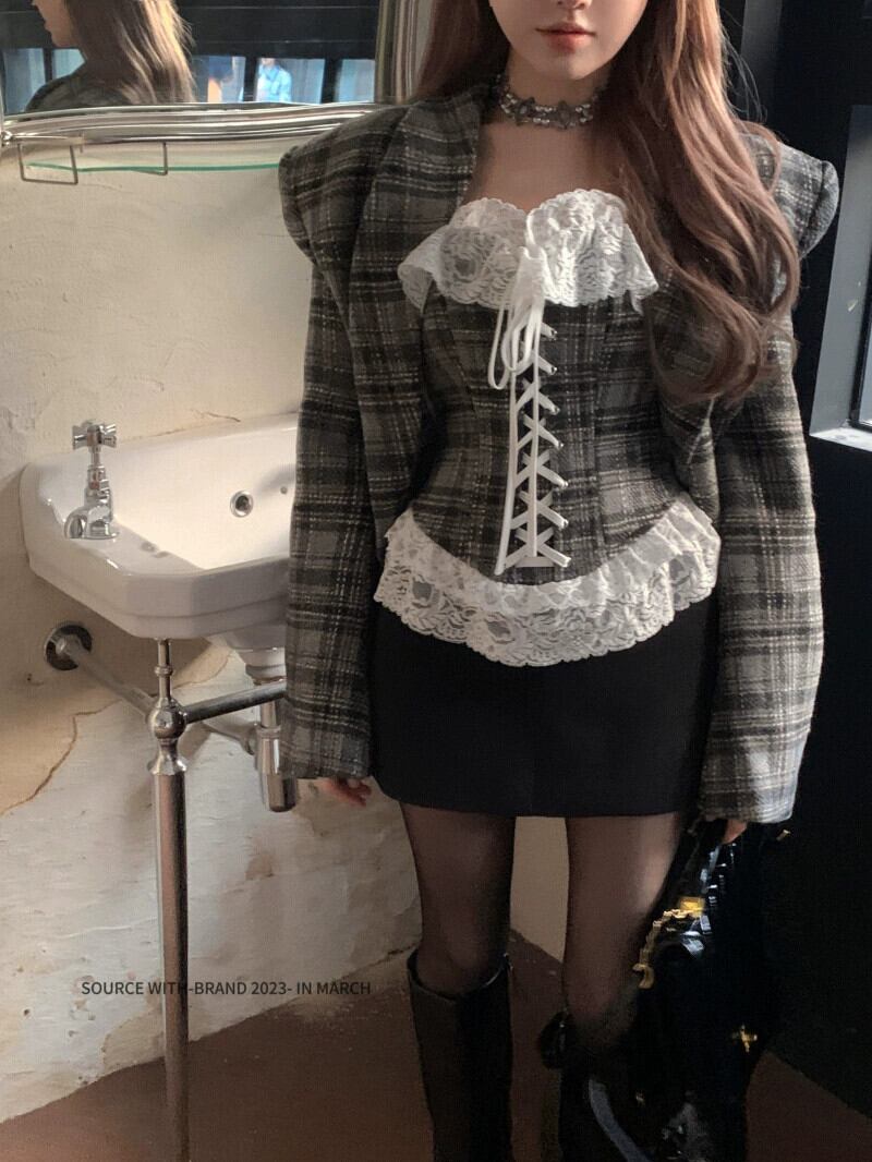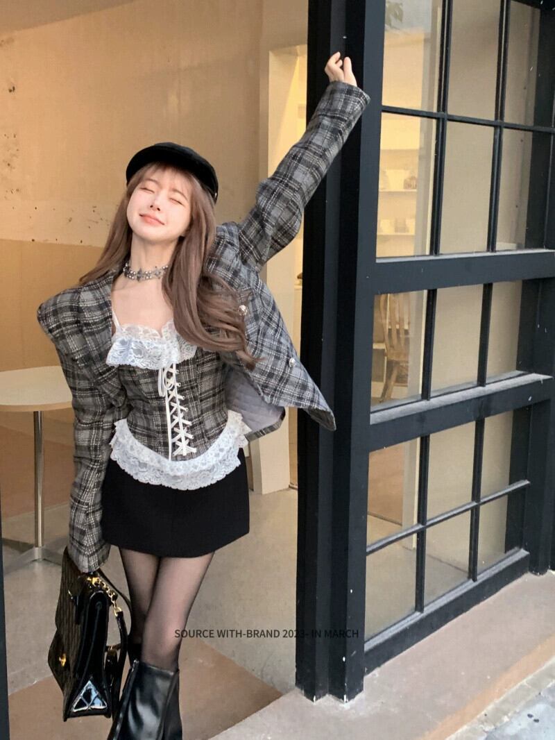 秋冬のコントラストチェック柄ブレザーレディース、新しいスタイル、ハイエンド、超見栄えの良い、ゆったりとしたカジュアルスーツトップ オータム 秋物 ウィンター 冬物 bstraw26333056921 | beaute25