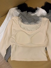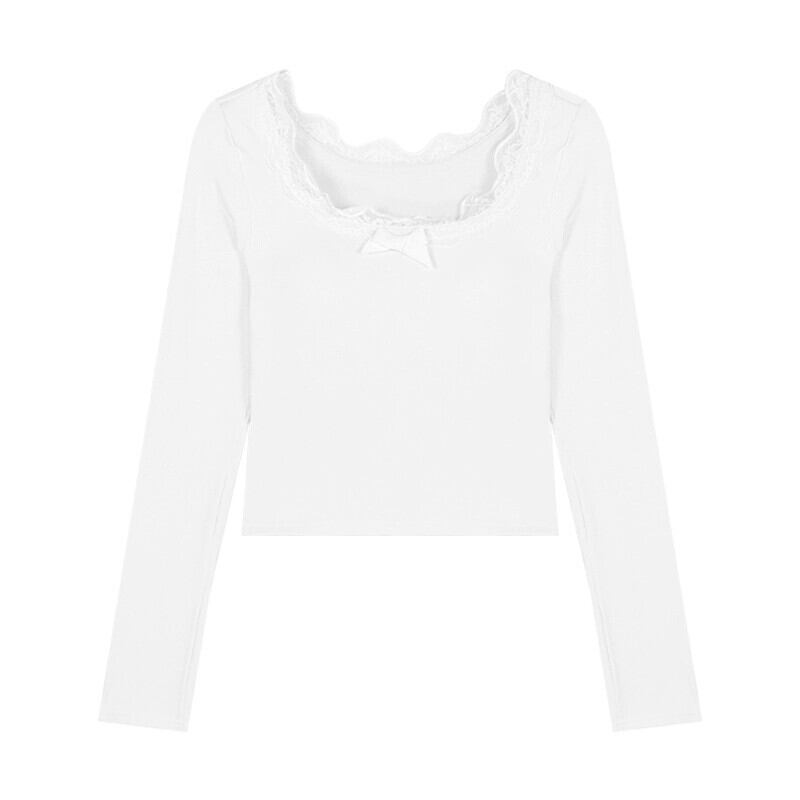 レースプラスベルベットボトムシャツ、長袖Tシャツレディース、春、スリムフィット、胸パッド付きショートスタイル、ピュアラストスタイルトップ ロング スプリング 春物 bstraw82370387372 | beaute25