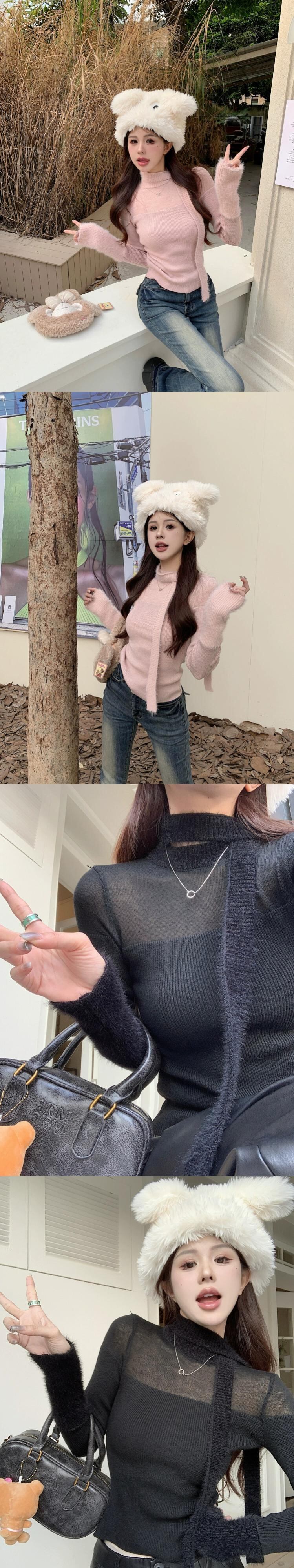 アプリコットシースルーハーフタートルネック長袖セータートップ女性春ウエストショート弾性インナーセーターボトミングシャツ ロング エラスティック 伸縮 スプリング 春物 bstraw92565814103 | beaute25