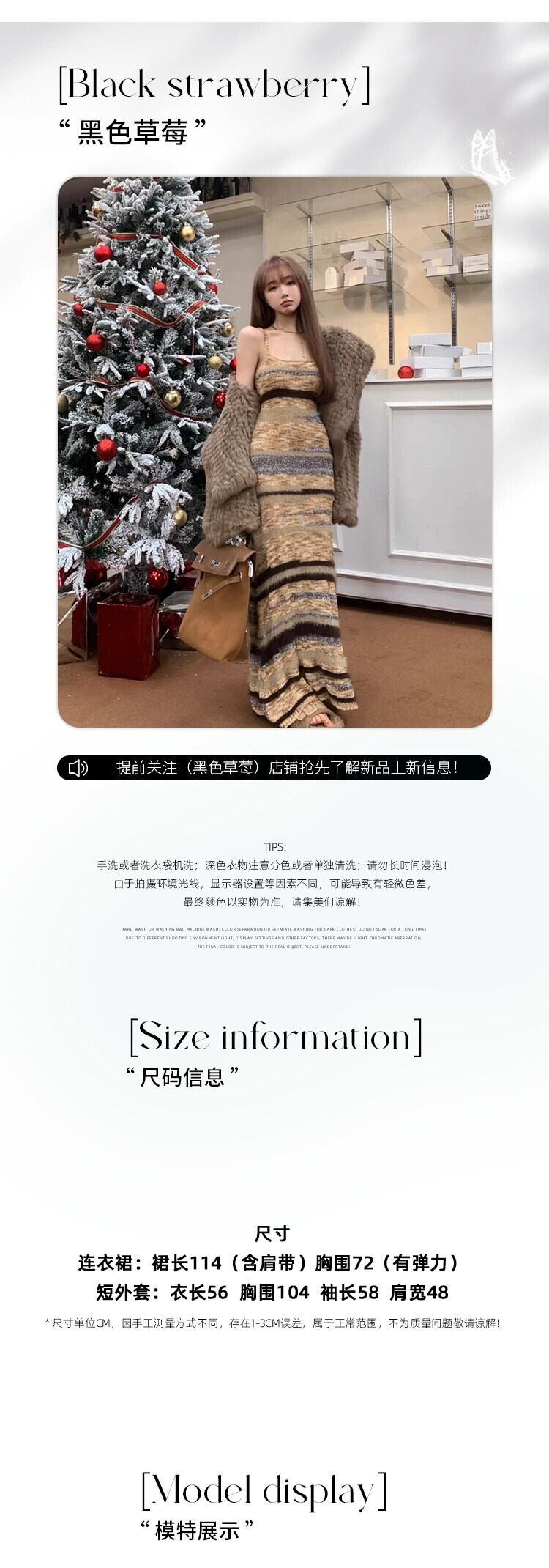 マオマオ ステッチ コントラスト ストライプ ニット サスペンダー ドレス レディース 初春レトロ ミッドレングス ヒップハグ フィッシュテール スカート スプリング 春物 bstraw15368162806 | beaute25