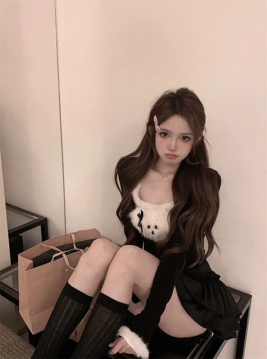 ぬいぐるみ子犬長袖スクエアネック Tシャツ女性の春の純粋な欲望ホットガールスリムショートトップとボトリングシャツ ロング スプリング 春物 ピュア スクウェア bstraw92068315188 | beaute25