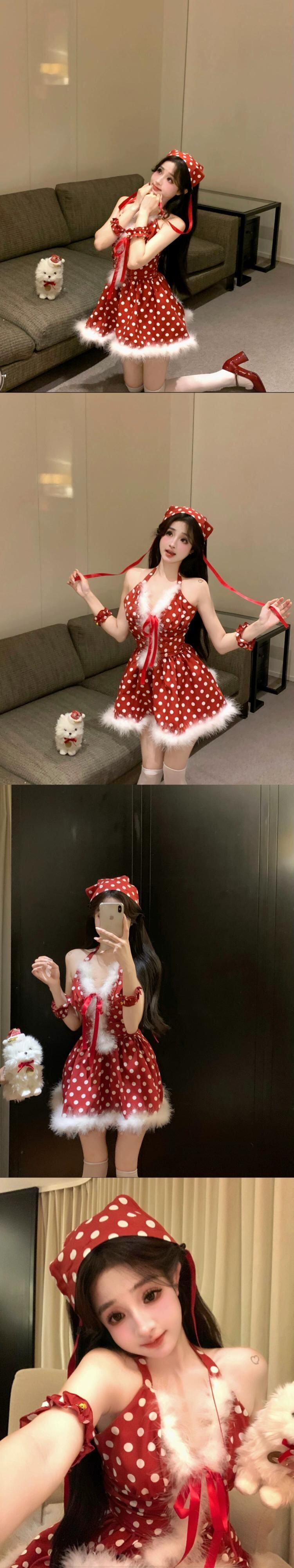 毛深いスプライシング水玉模様のホルターネックサスペンダードレス女性の夏のセクシーな純粋な欲望ウエスト A ラインショートスカート サマー 夏物 Aライン ピュア bstraw830594736 | beaute25