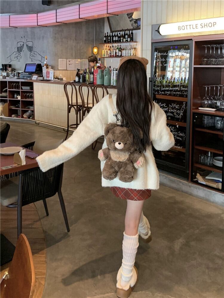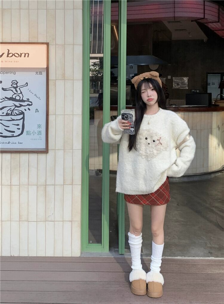 ぬいぐるみの子犬のソフトでワックス状のラウンドネックセーター、春の女性、優しくて怠惰なスタイル、ゆったりとした長袖プルオーバーセータートップ ロング スプリング 春物 Oネック bstraw23678022969 | beaute25