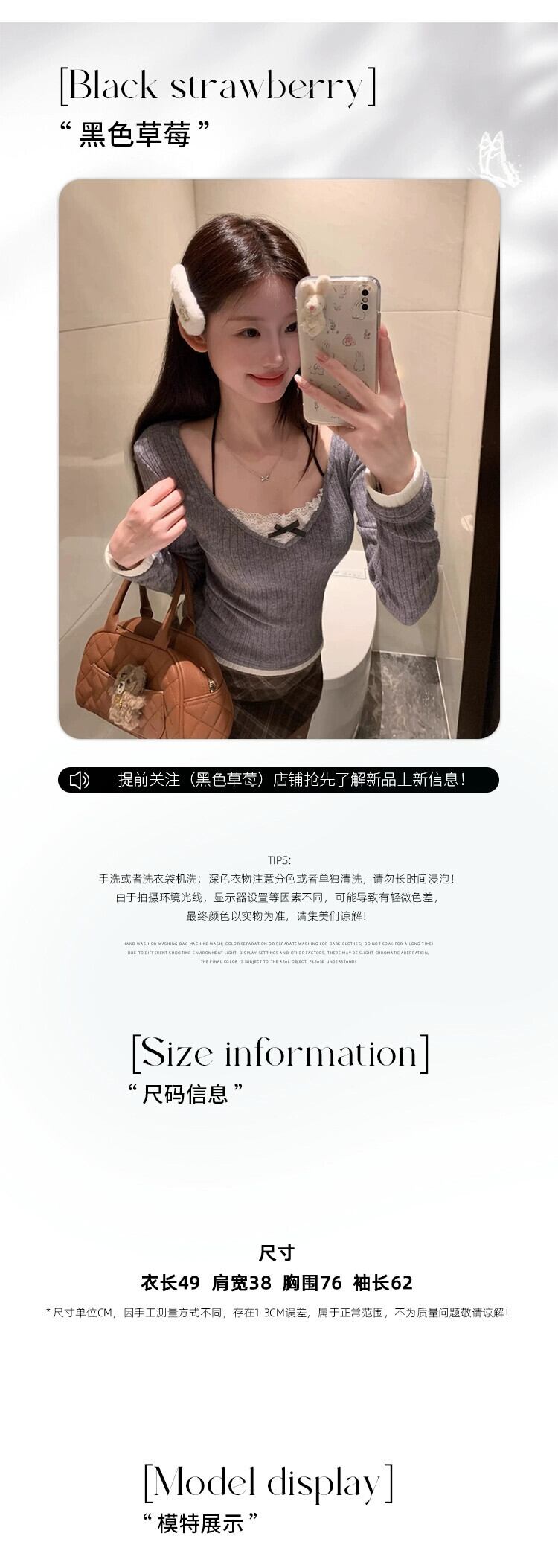 フェイクツーピースレーススプライシングホルターネック長袖セーターレディース早春グレーシックショートインナー重ね着トップ ロング スプリング 春物 bstraw29904930806 | beaute25