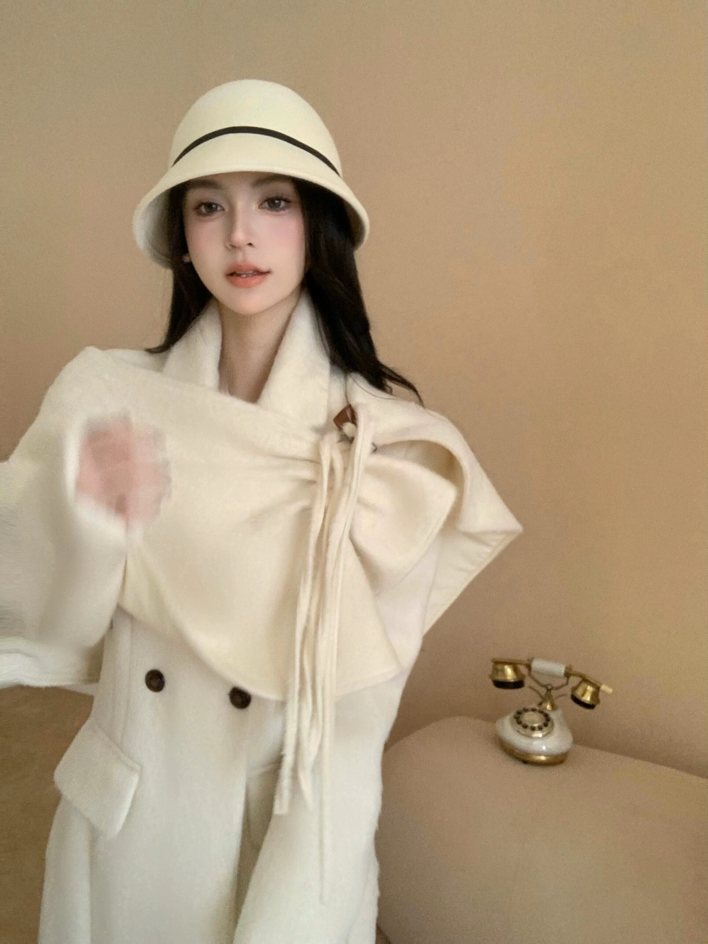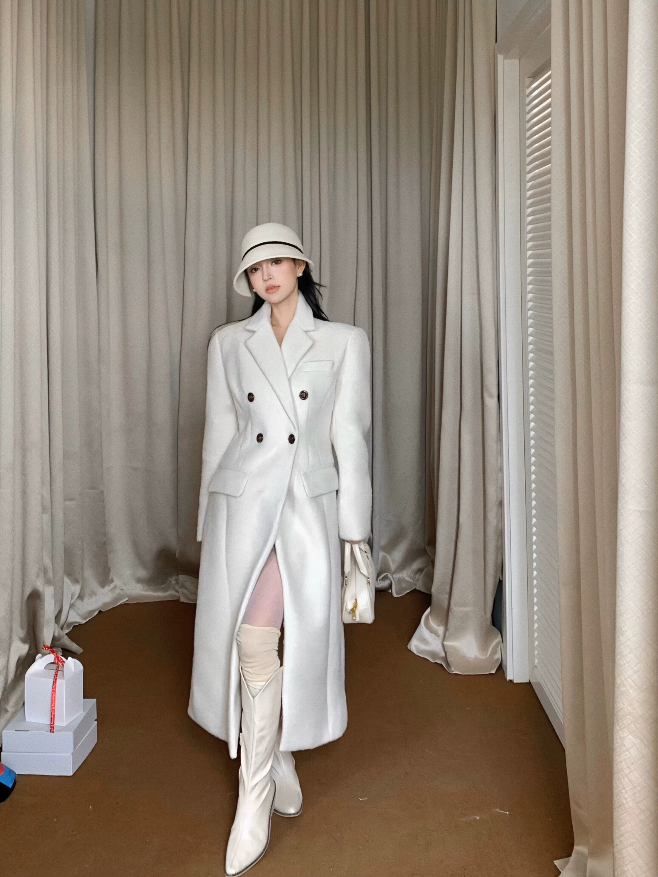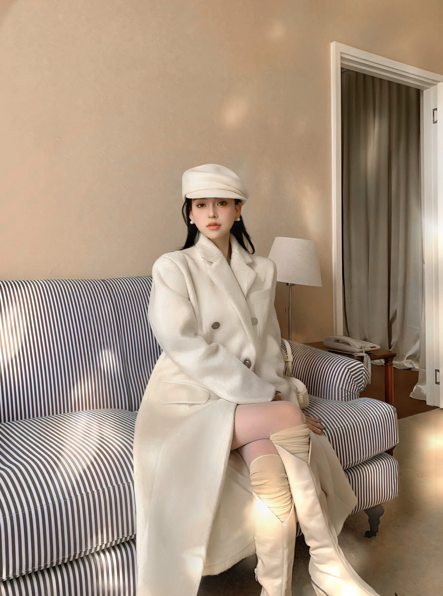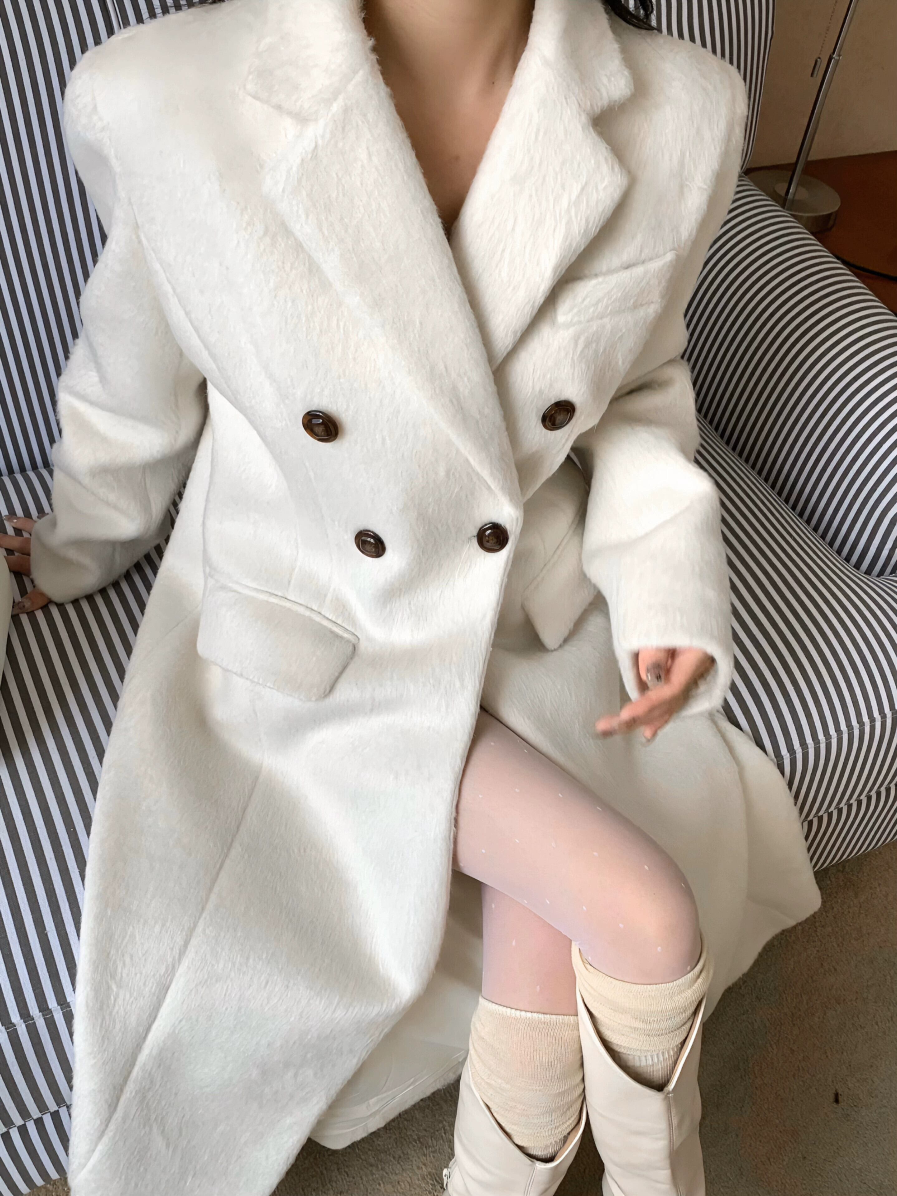 オフホワイトのキルティング厚みのあるウールのコートの女性の秋と冬の新しいスタイルのハイエンドのミッドレングスウールの気質オーバーザニーコート オータム 秋物 ウィンター 冬物 bstraw80496794212 | beaute25