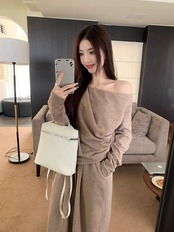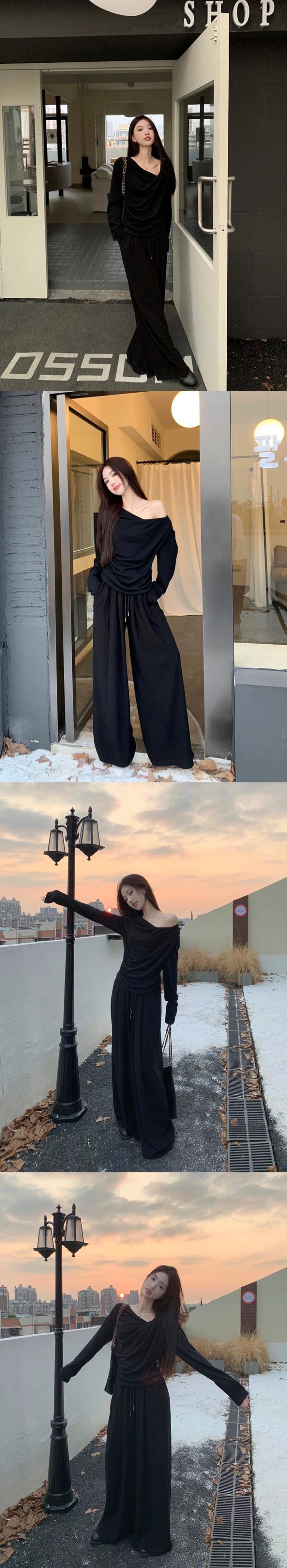 色:ミルクコーヒートップ,クリーム色のズボン,ブラックトップ,黒いズボン