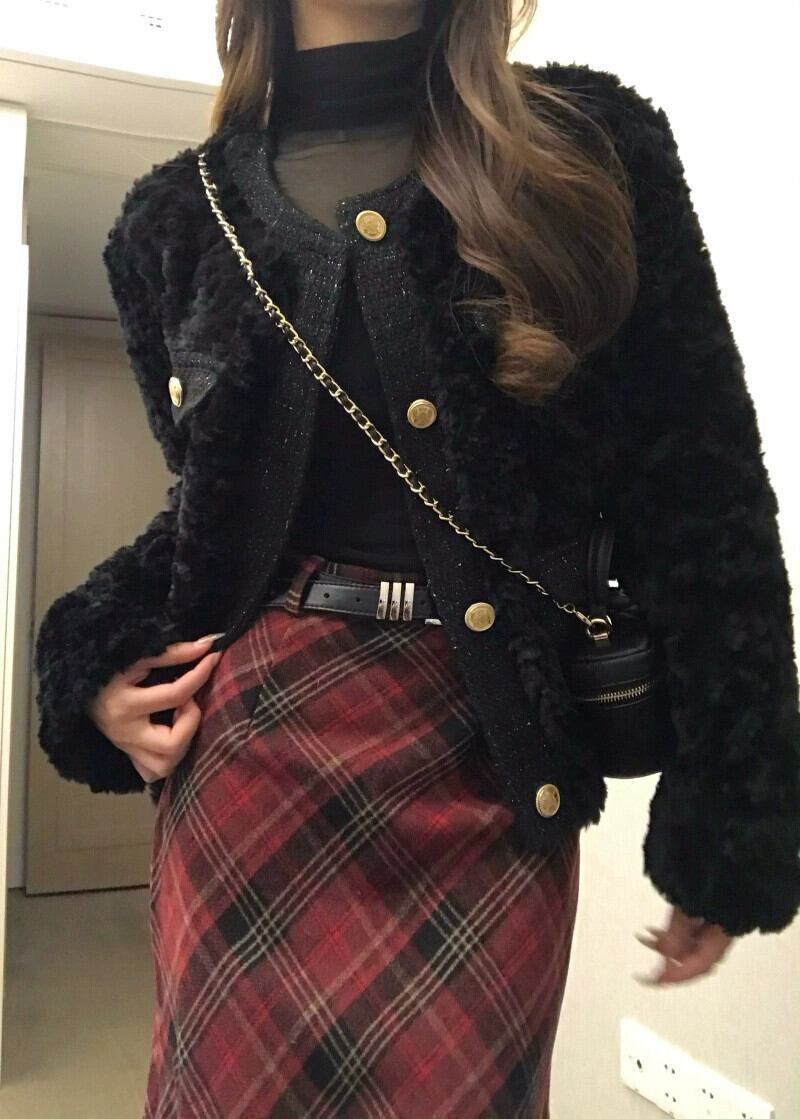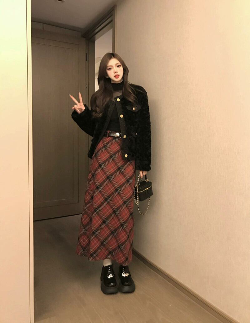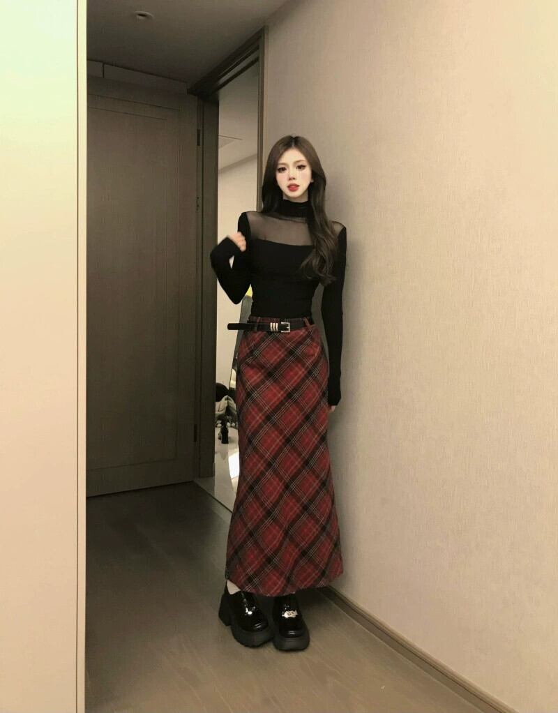 色:リトルブラックの香り,レースボトムスシャツ,レッドチェックスカート