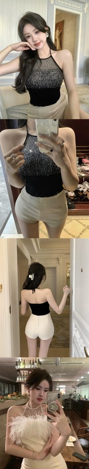 Pure lust スタイル ダイヤモンド キャミソール レディース 2024 夏の新しいセクシーなスリム インナー ホルター トップ サマー 夏物 bstraw96463862998 | beaute25