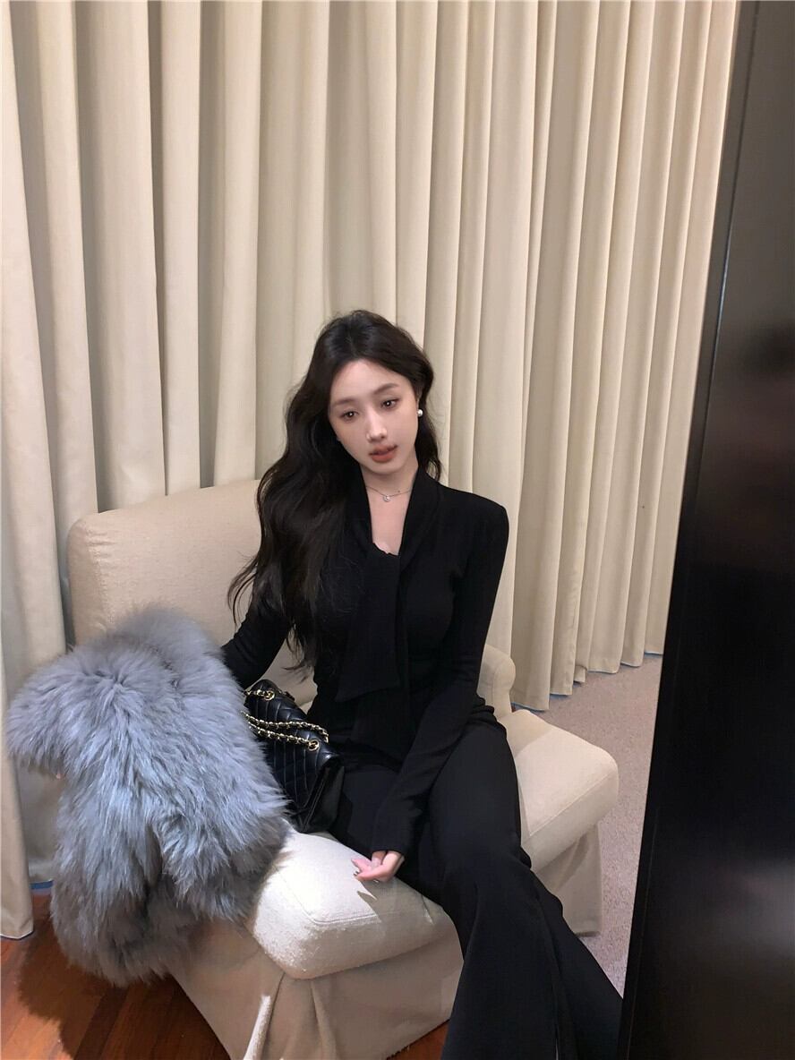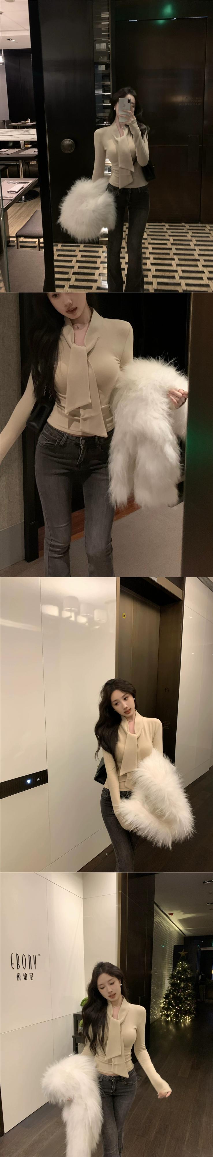 春先のコーヒー色の起毛レースアップ長袖 T シャツ、新しいスリムフィットのインナー レイヤリング、エレガントなボトリング シャツ、シックなトップス ロング レッド スプリング 春物 Tシャツ bstraw49982951462 | beaute25