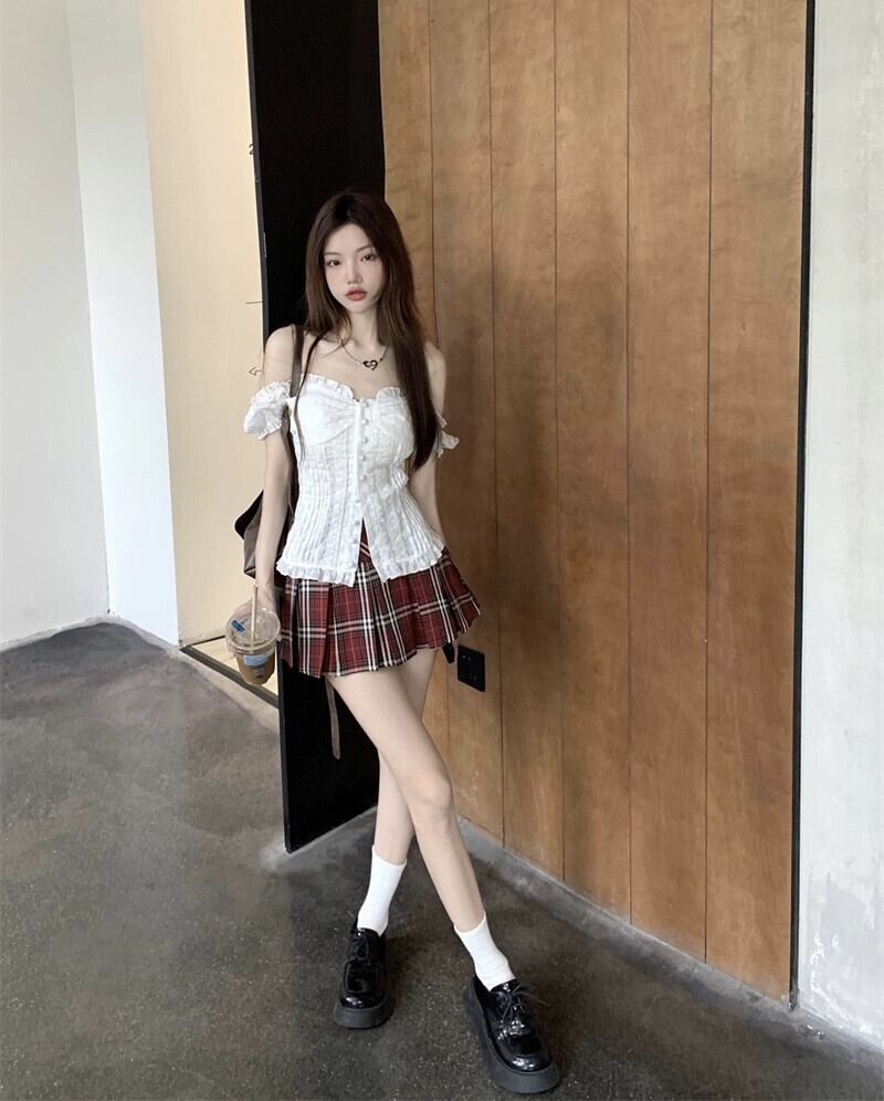 スタイルホットガール赤チェック柄スカート女性の夏のウエストスリム A ラインプリーツスカート小さなショートスカート レッド サマー 夏物 Aライン bstraw65687600683 | beaute25