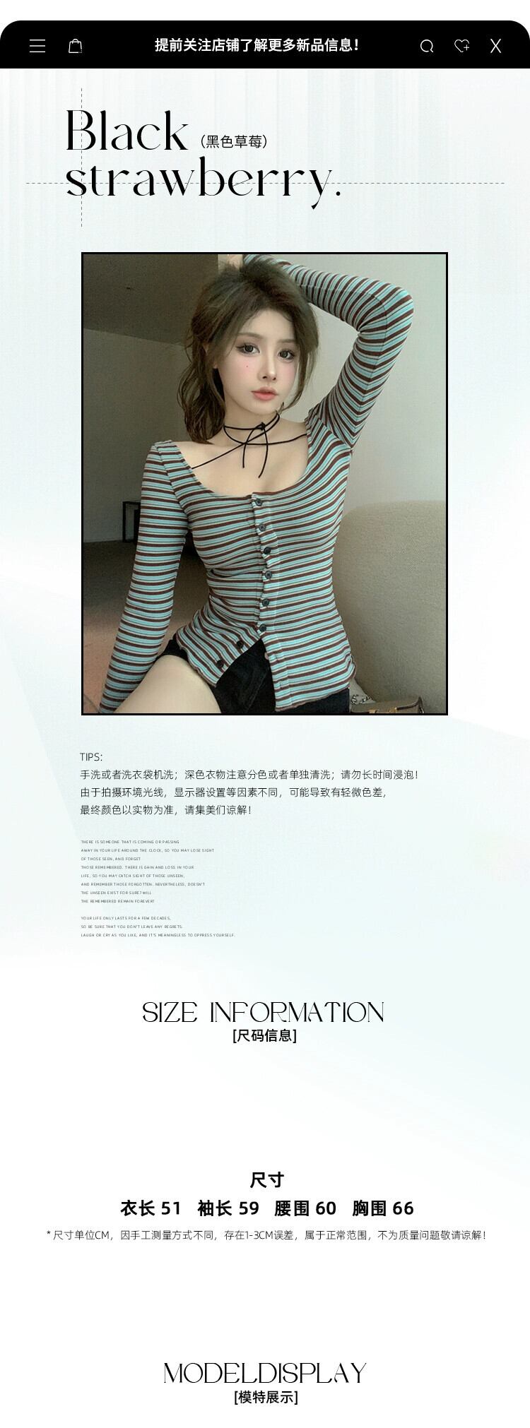 Pure Desire ホットガールストライプレトロ長袖 Tシャツ女性の早春 2024 ストラップ U ネックウエストスリムボタントップ ロング スプリング 春物 bstraw31551744521 | beaute25