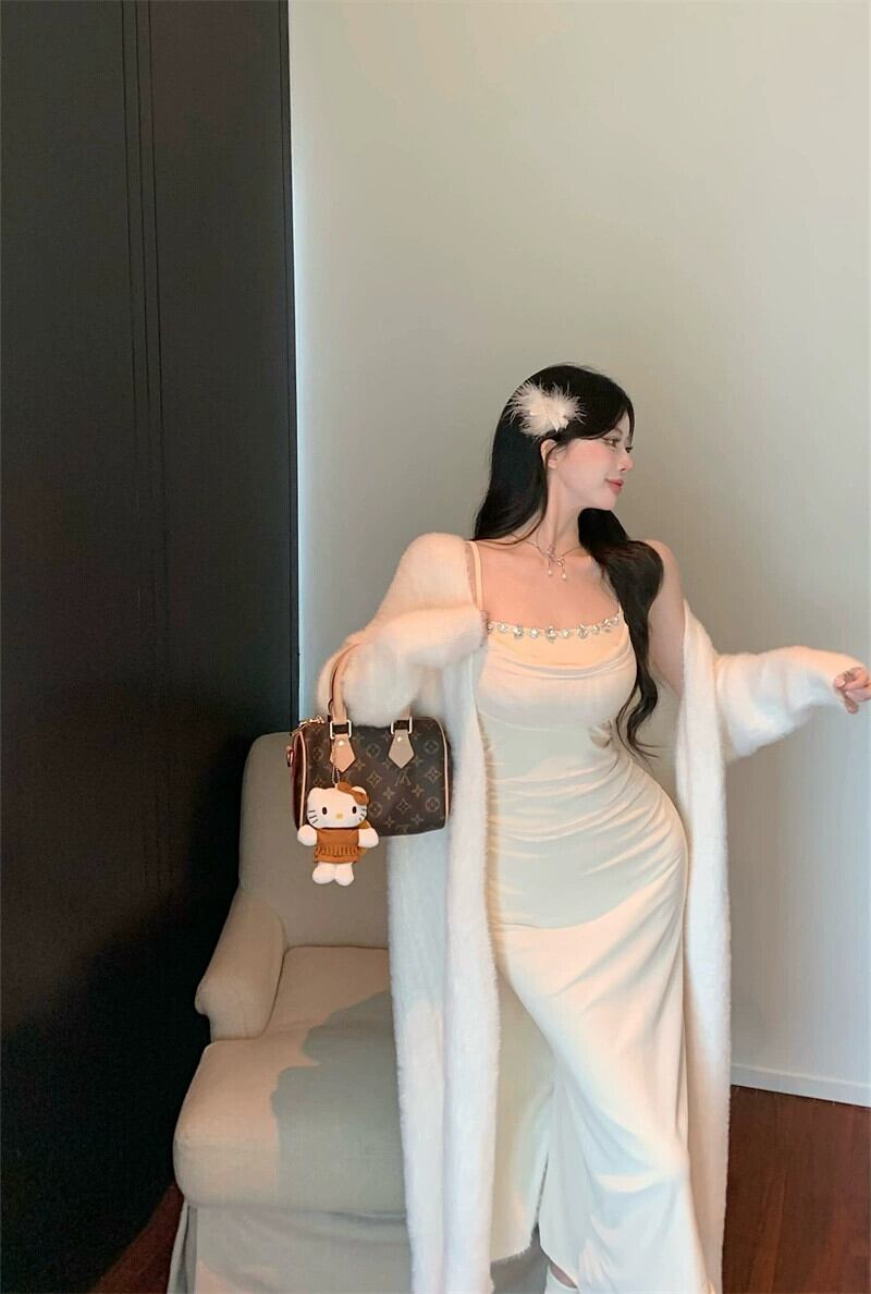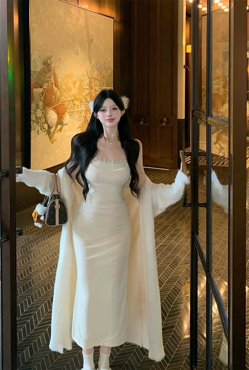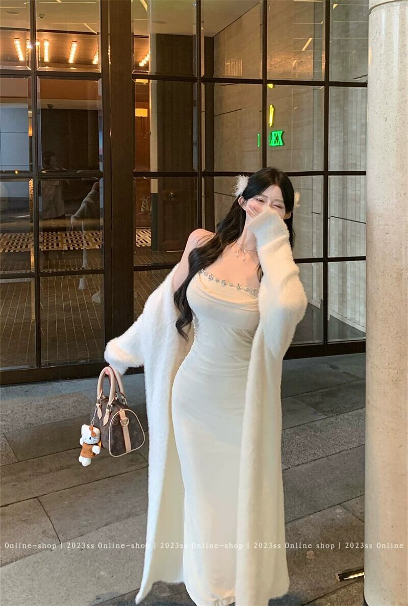 怠惰なスタイルソフトワックス状大型キルトセーターコート女性秋と冬のベルベット厚く暖かいニットカーディガンミッドレングストップ オータム 秋物 ウィンター 冬物 bstraw19224522193 | beaute25